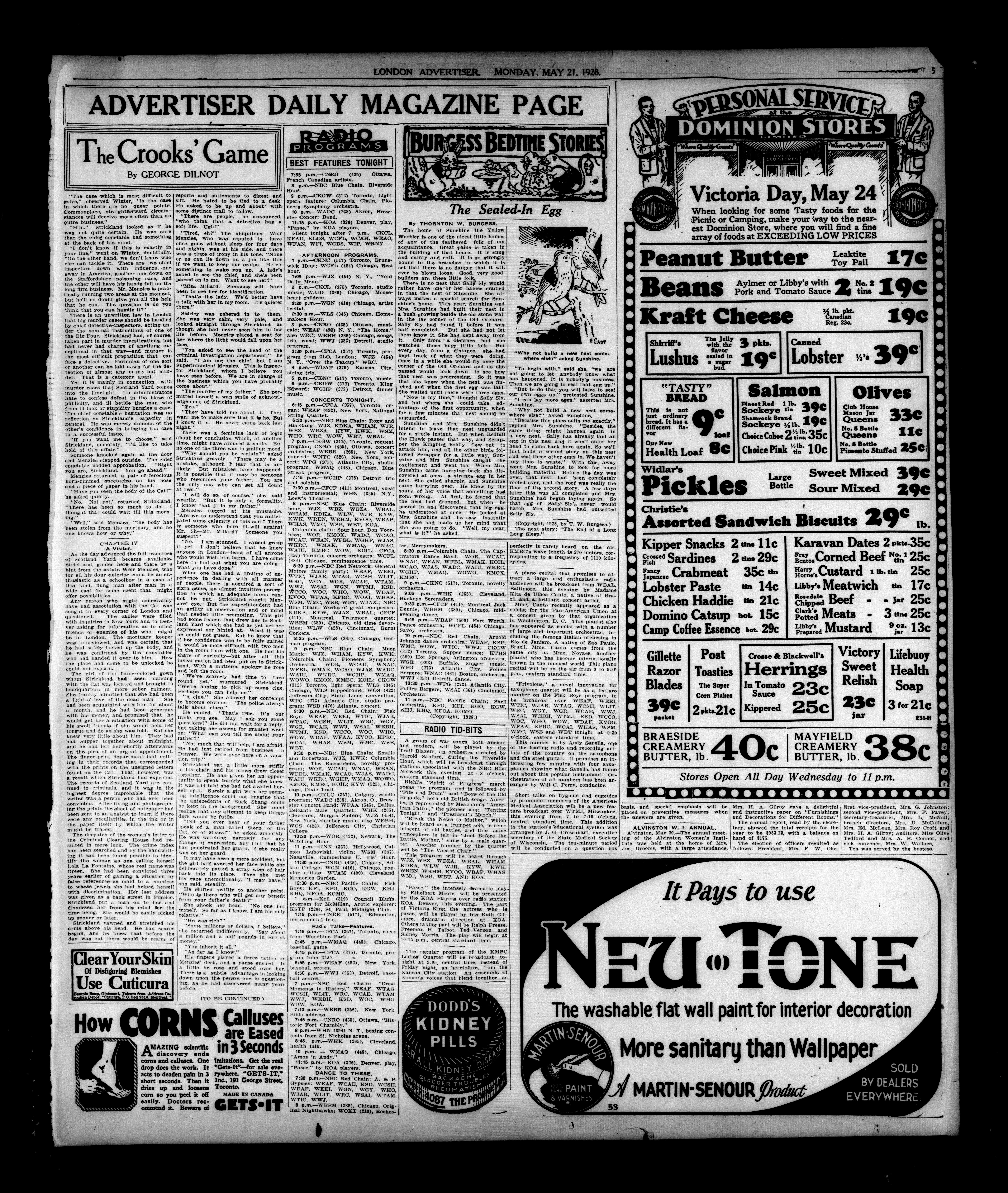London, Ontario : London Advertiser Company, Limited, [1928]; 16 images, 0 avec recherche en texte intégral