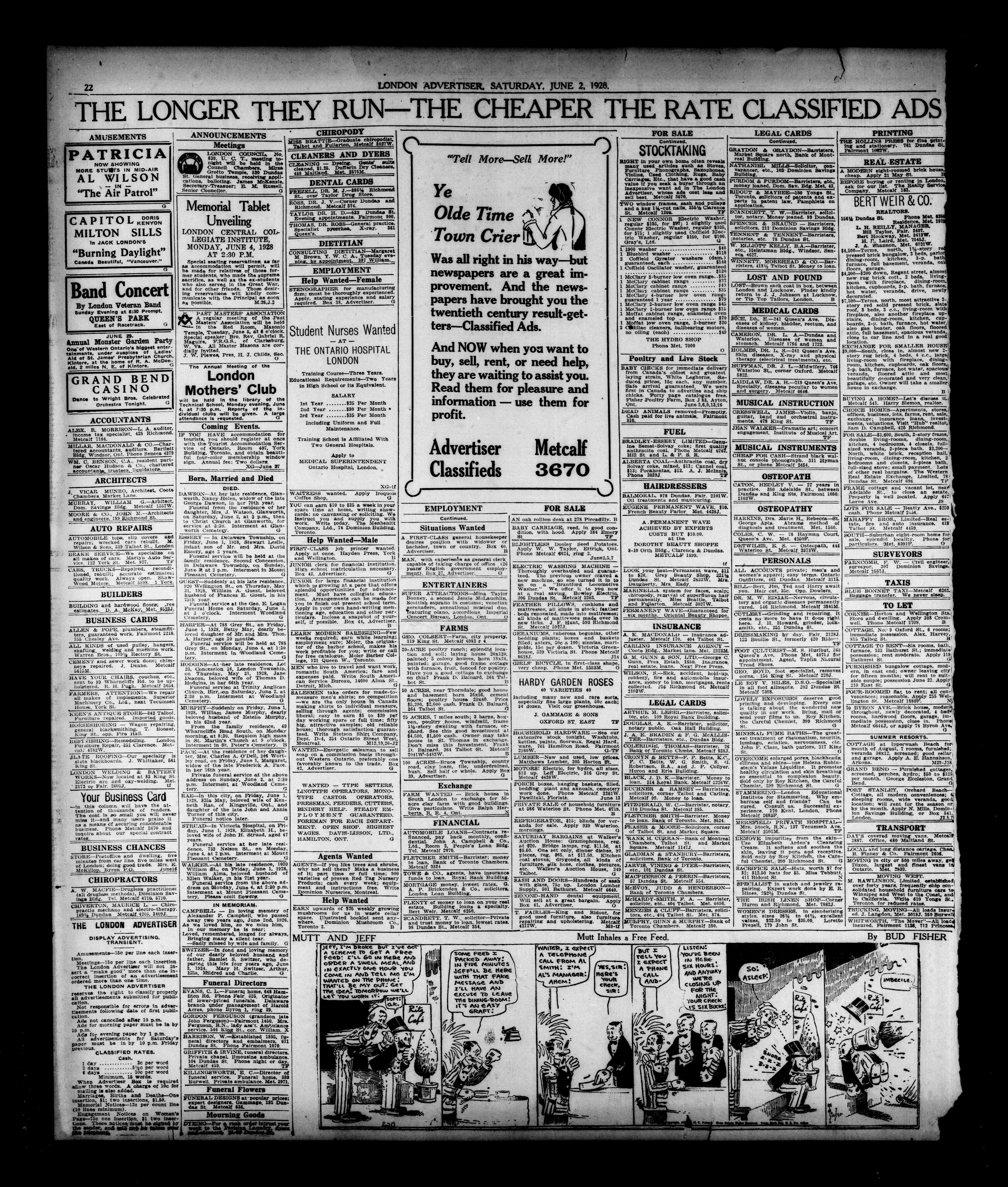 Aide London, Ontario : London Advertiser Company, Limited, [1928]; 26 images, 0 avec recherche en texte intégral