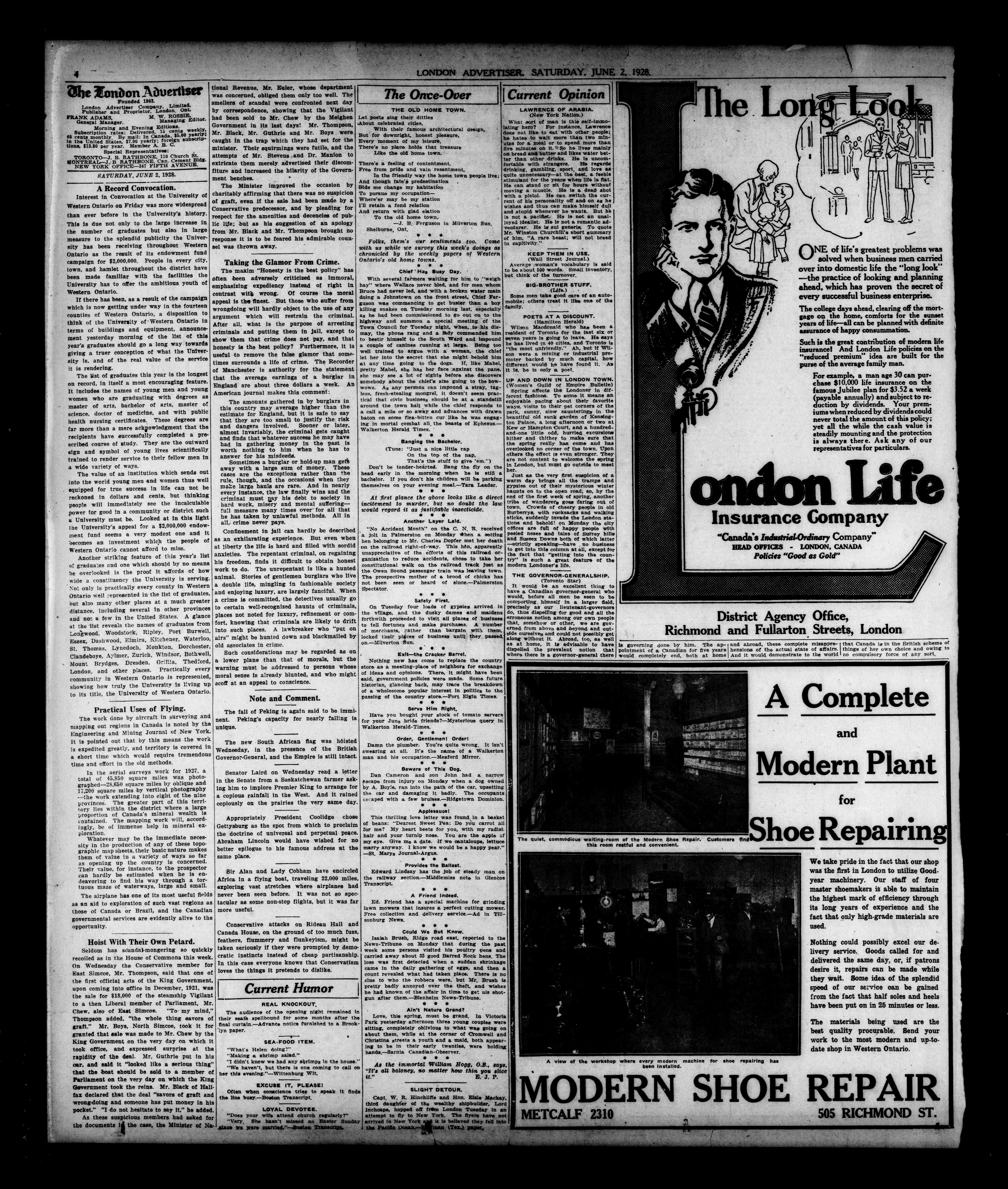 London, Ontario : London Advertiser Company, Limited, [1928]; 26 images, 0 avec recherche en texte intégral