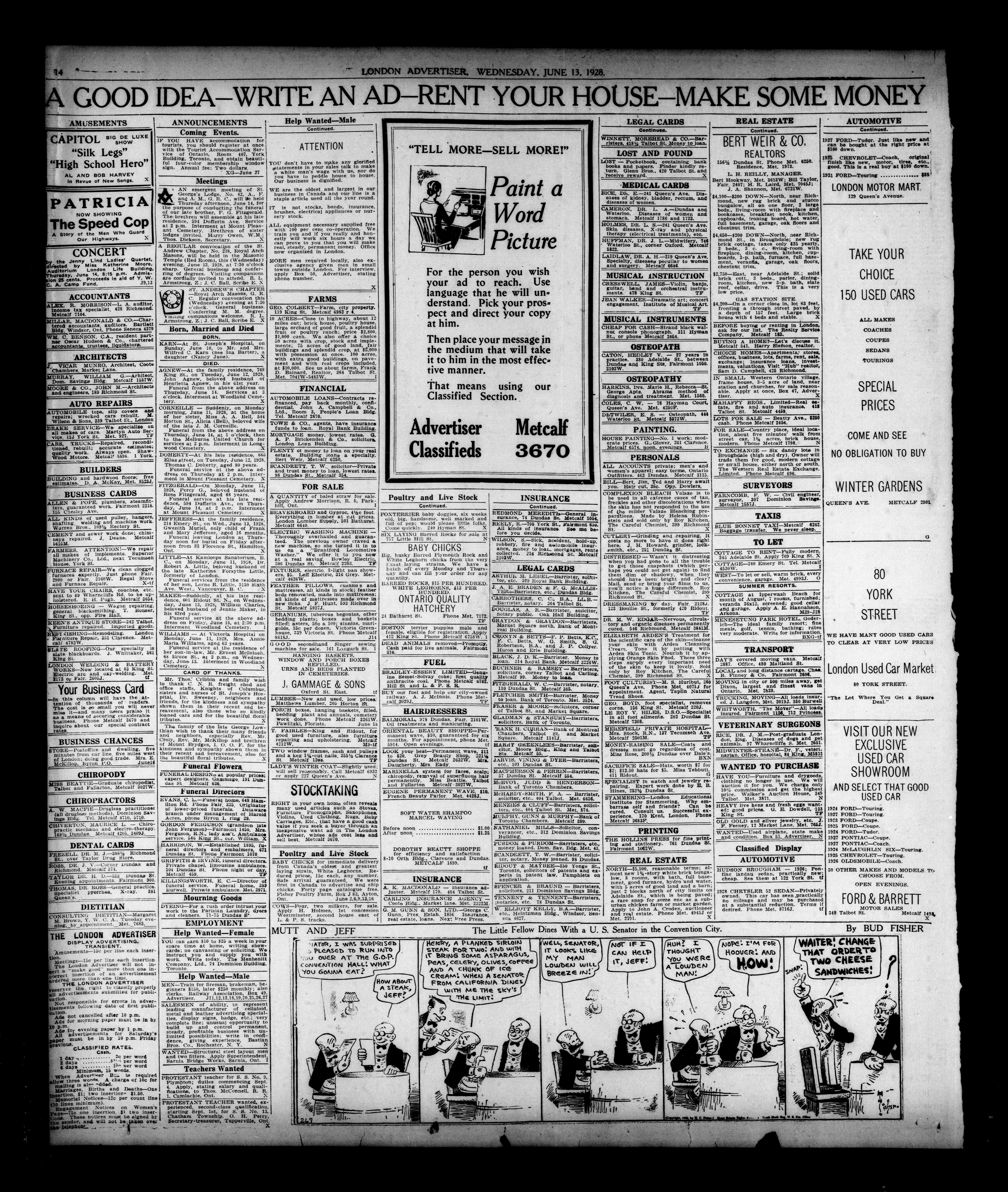 London, Ontario : London Advertiser Company, Limited, [1928]; 16 images, 0 avec recherche en texte intégral