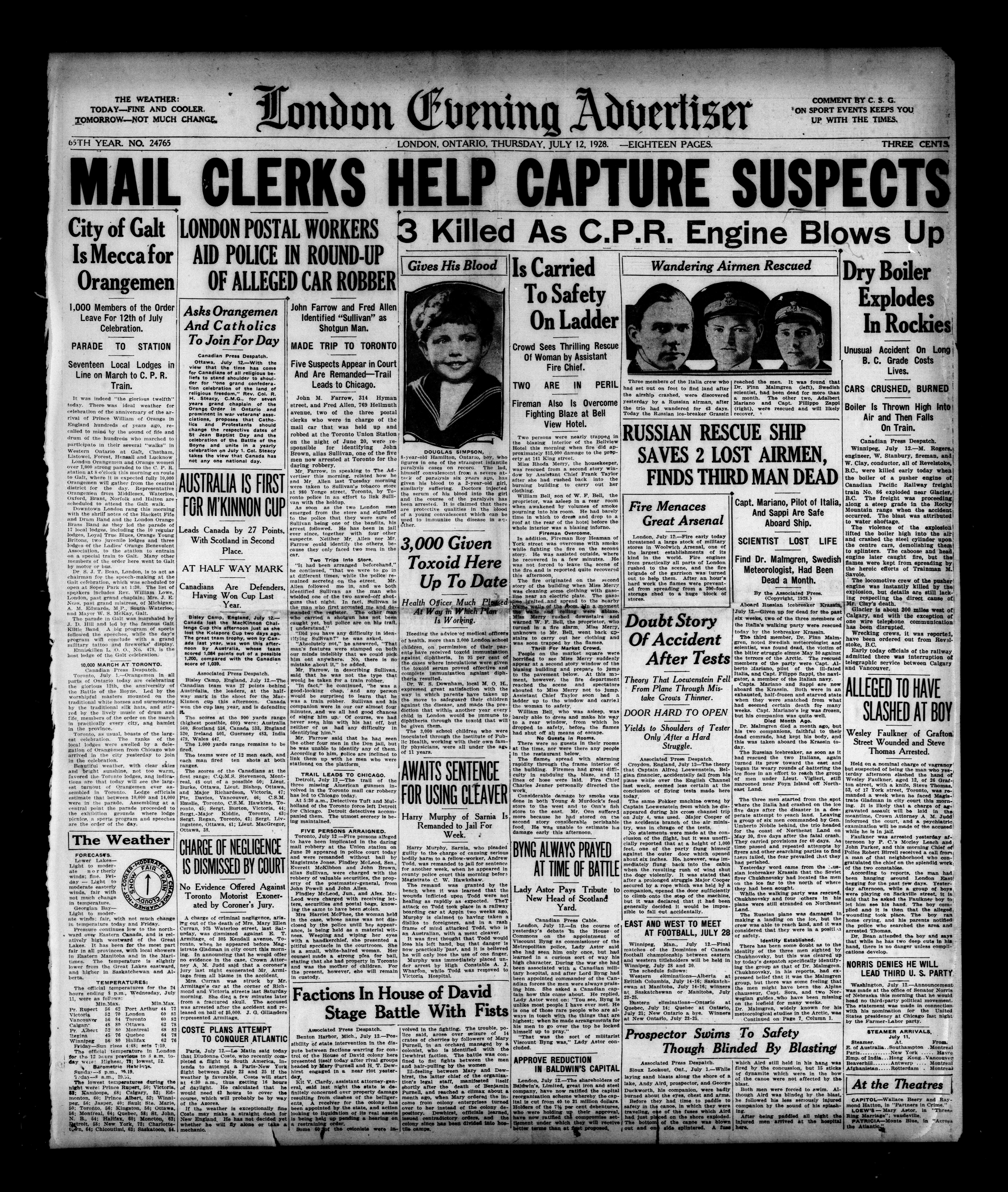 London, Ontario : London Advertiser Company, Limited, [1928]; 18 images, 0 avec recherche en texte intégral