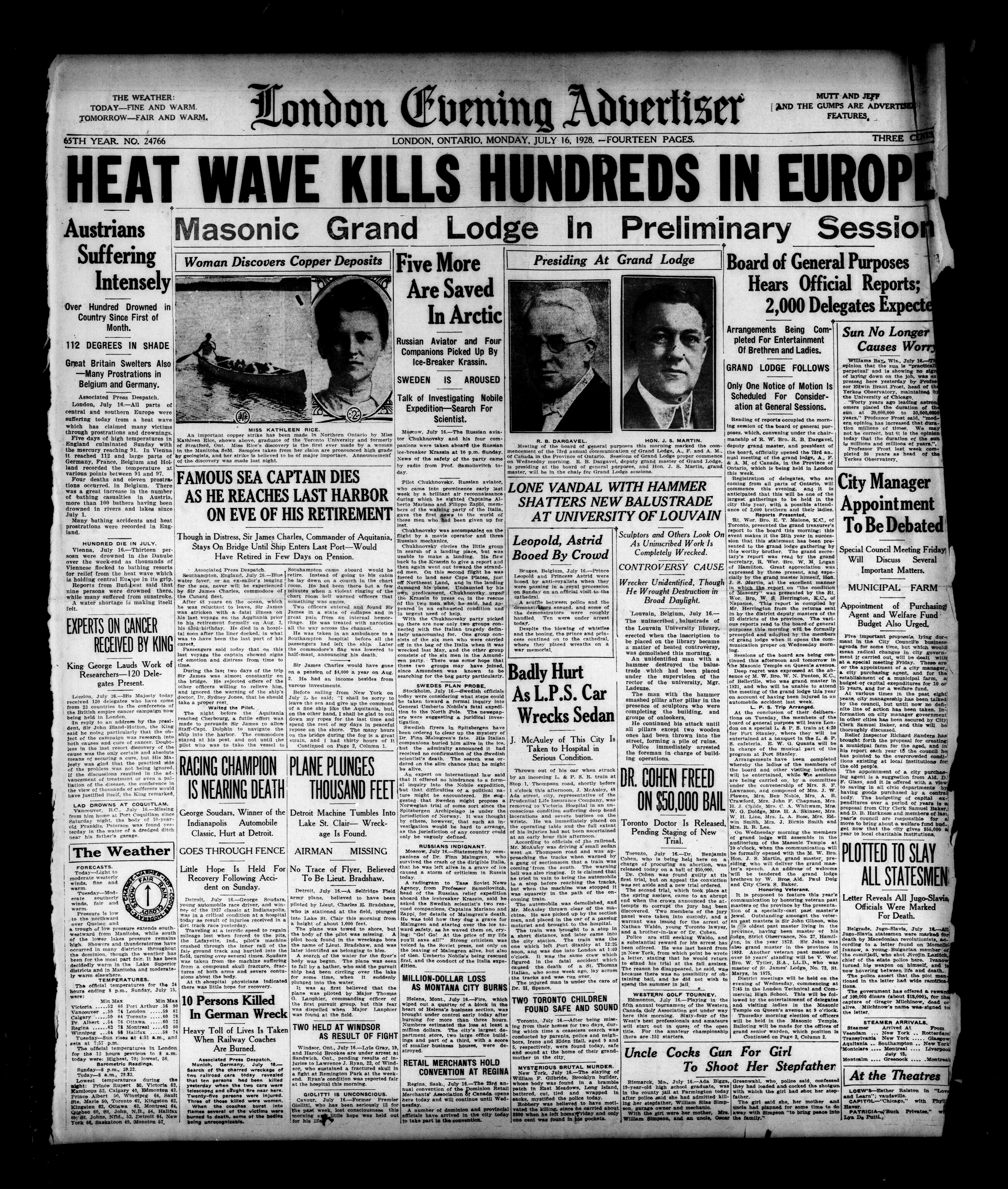 London, Ontario : London Advertiser Company, Limited, [1928]; 14 images, 0 avec recherche en texte intégral