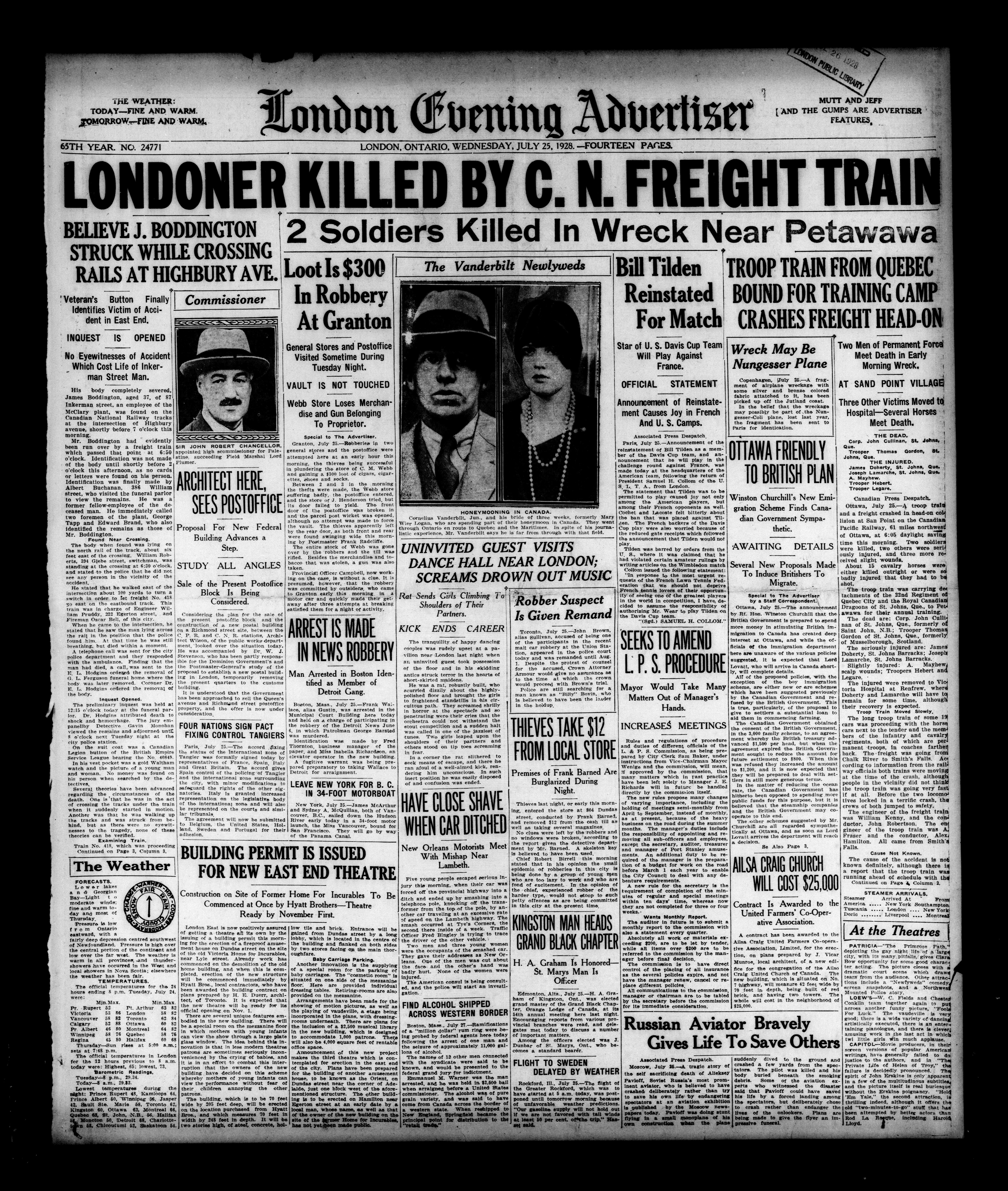 London, Ontario : London Advertiser Company, Limited, [1928]; 14 images, 0 avec recherche en texte intégral