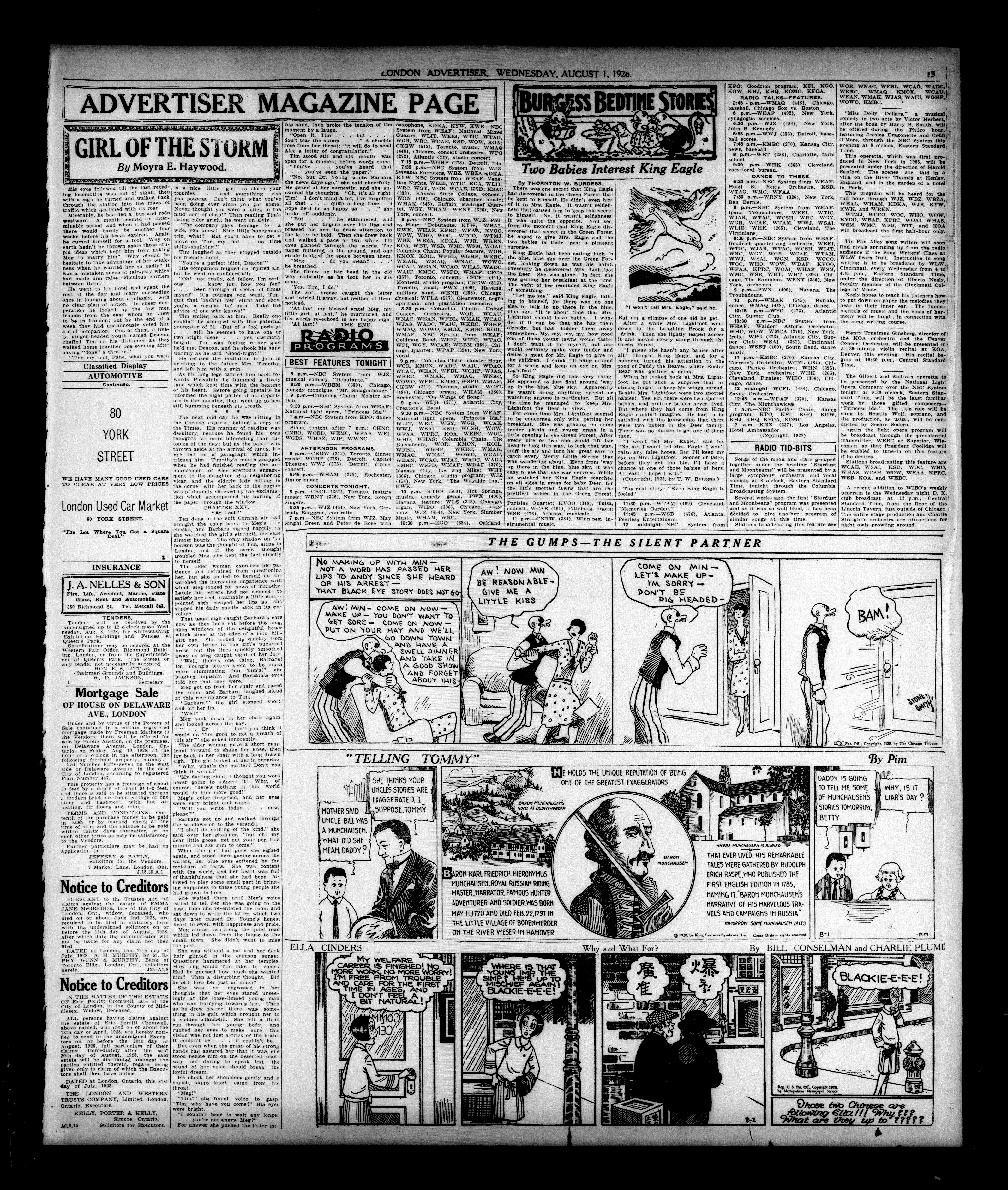London, Ontario : London Advertiser Company, Limited, [1928]; 14 images, 0 avec recherche en texte intégral