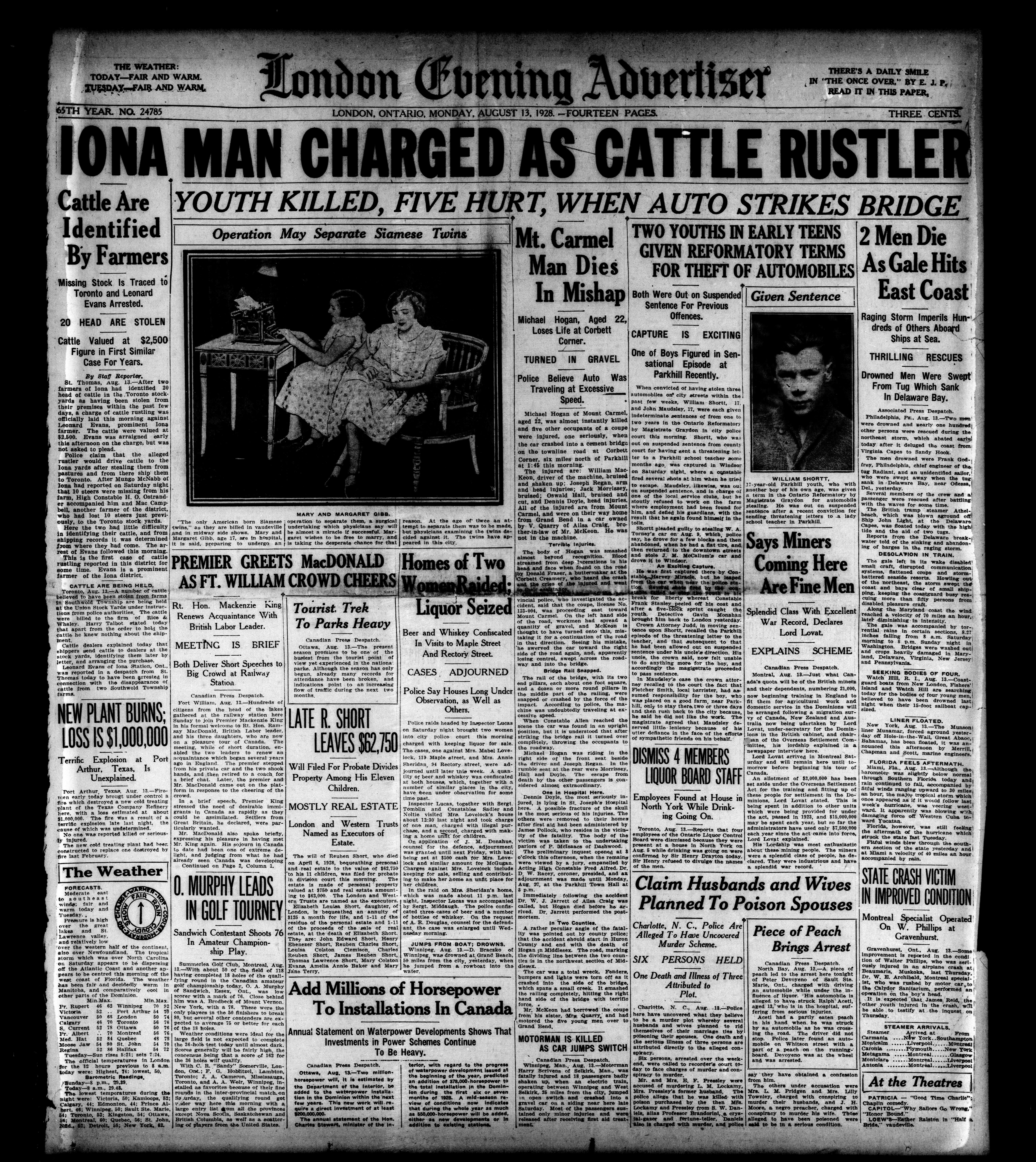 London, Ontario : London Advertiser Company, Limited, [1928]; 14 images, 0 avec recherche en texte intégral