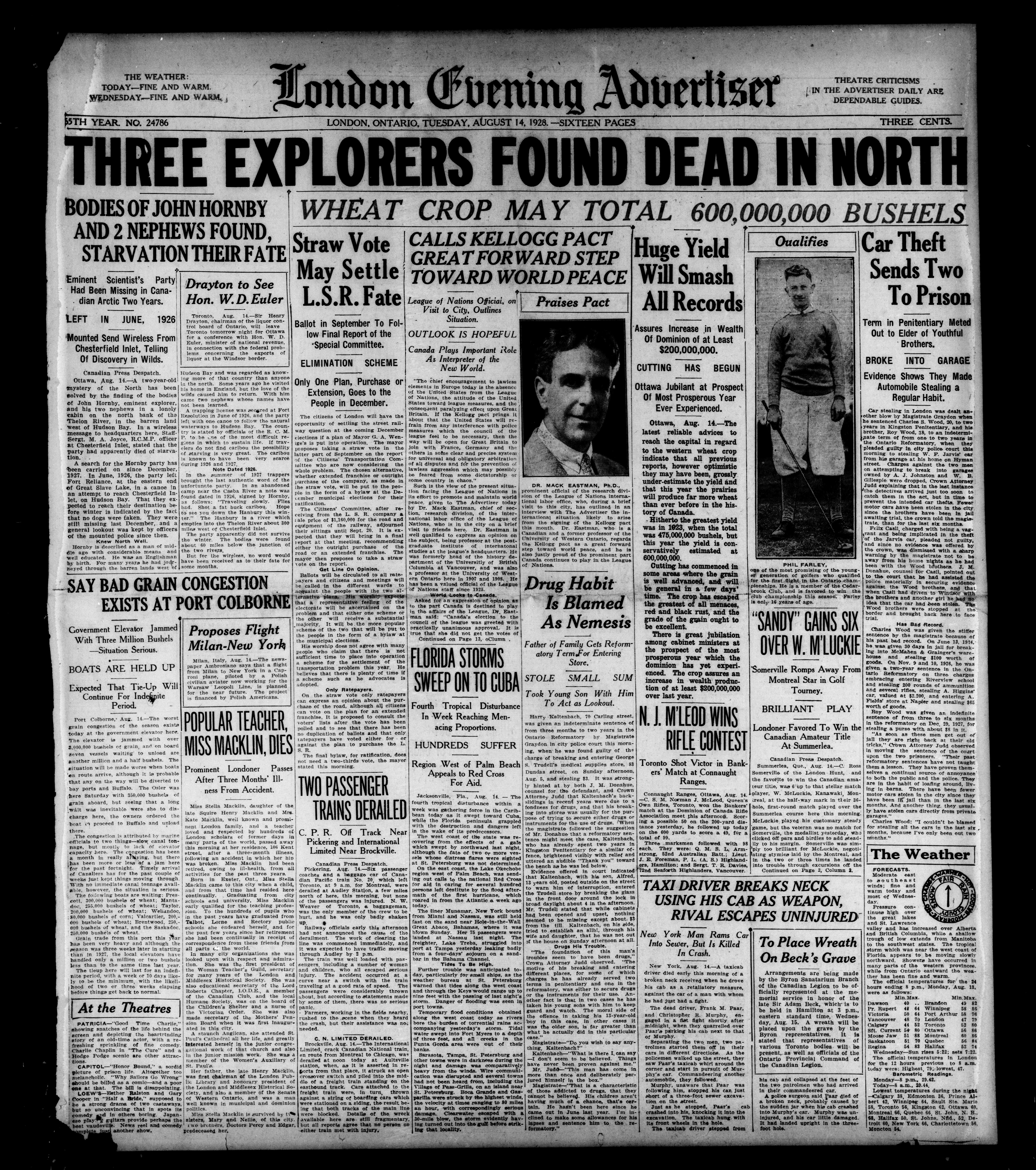 London evening advertiser : 65th Year, No. 24786 (August 14, 1928) - Published