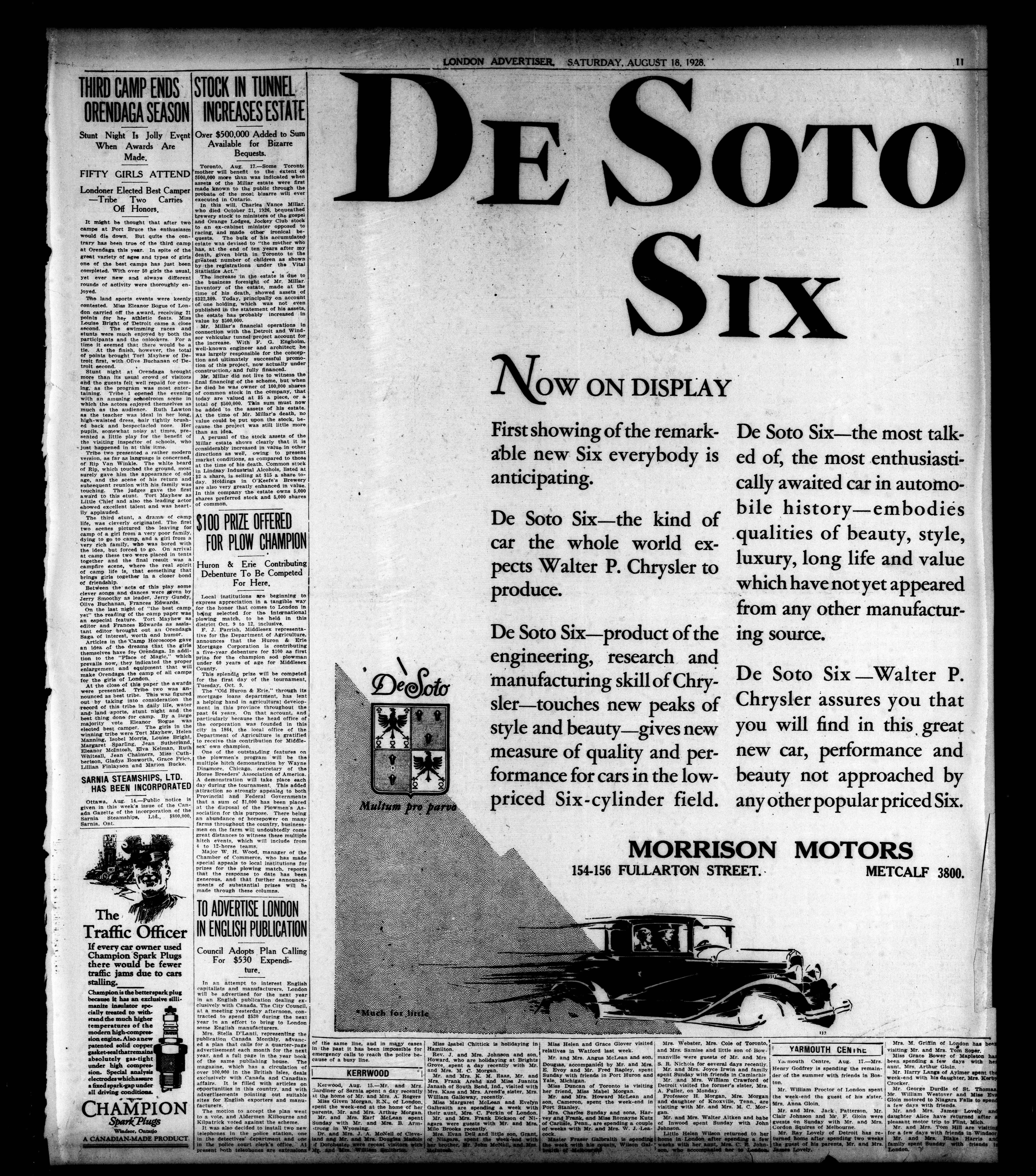 London, Ontario : London Advertiser Company, Limited, [1928]; 24 images, 0 avec recherche en texte intégral