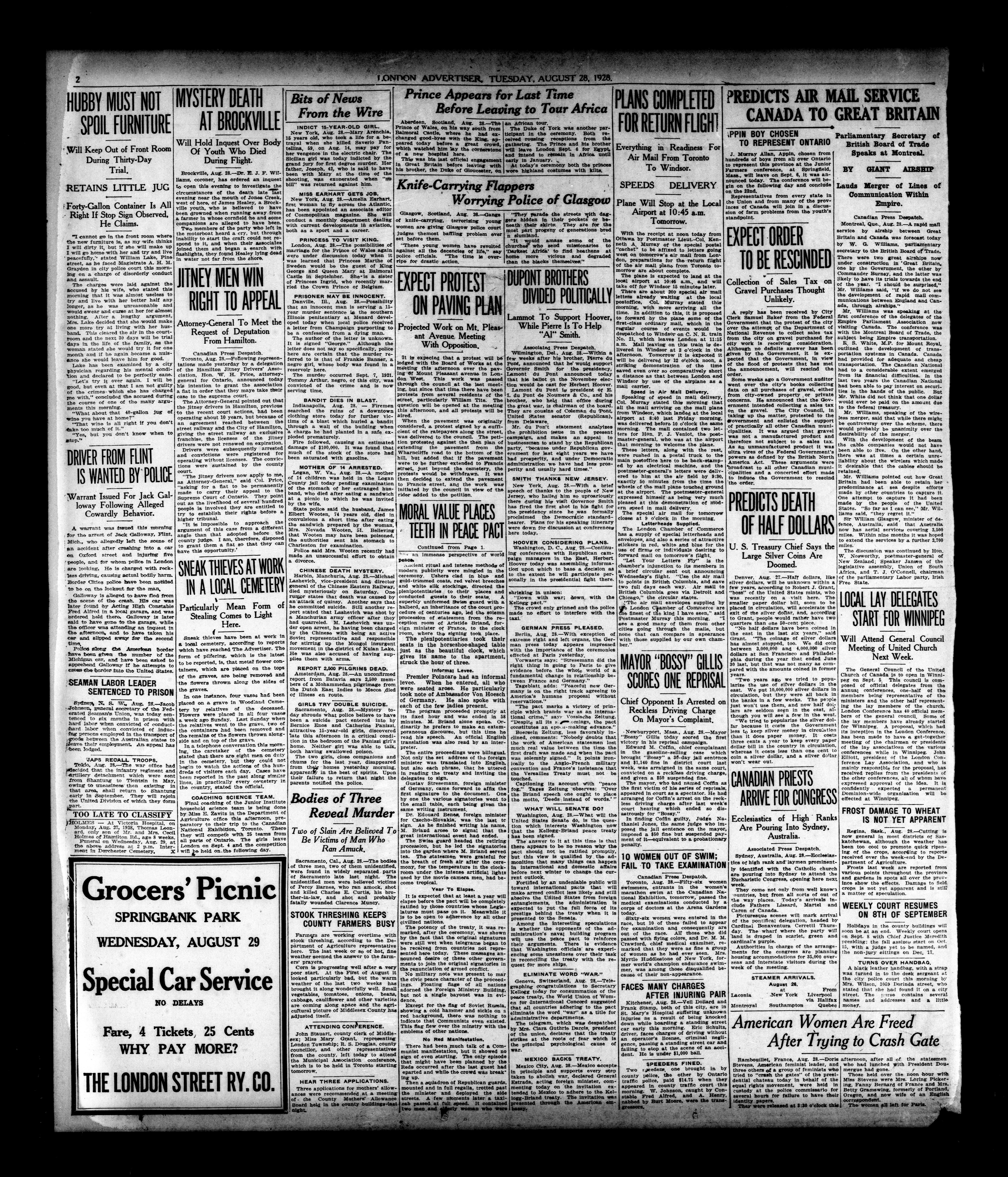 Aide London, Ontario : London Advertiser Company, Limited, [1928]; 16 images, 0 avec recherche en texte intégral