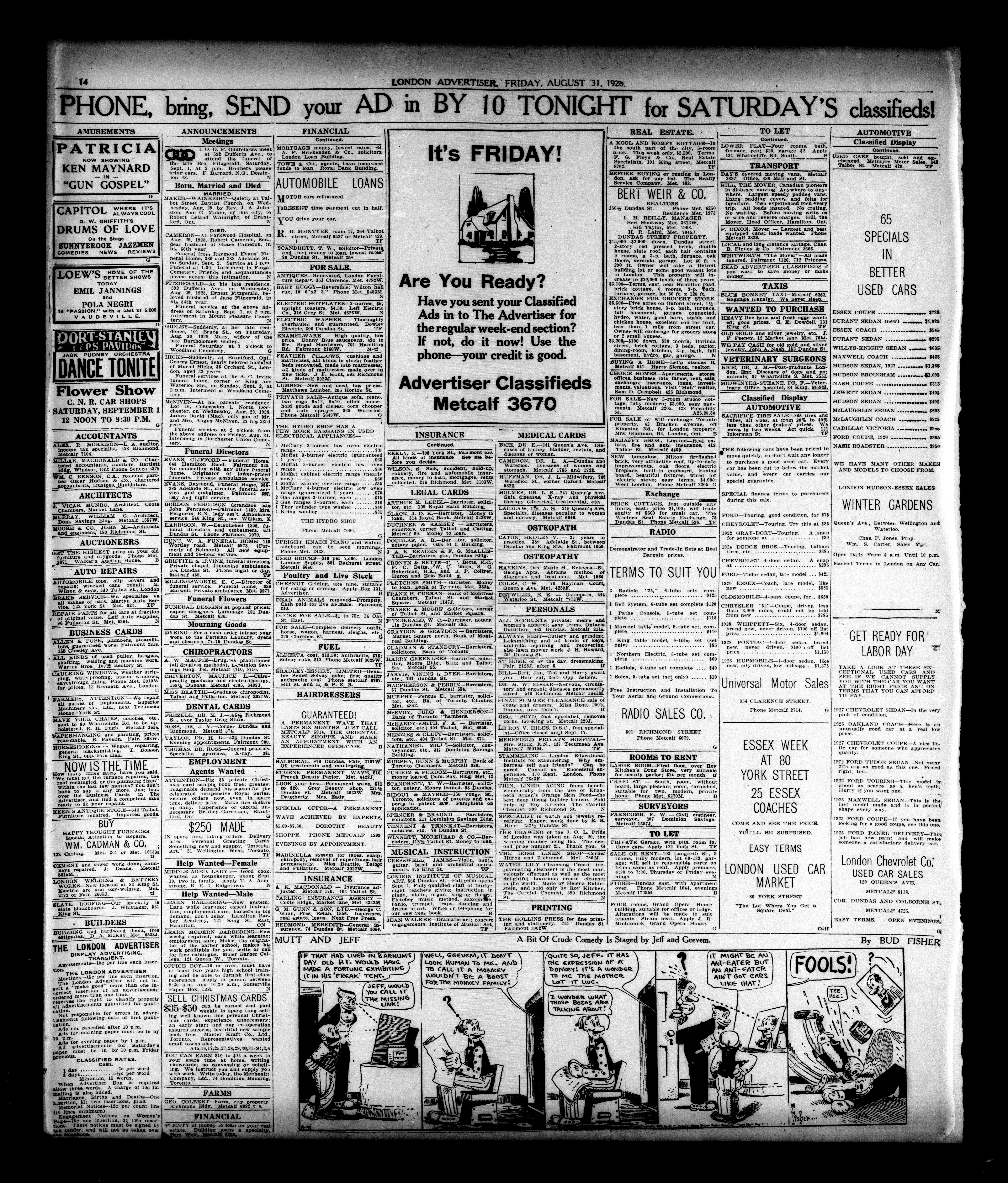 London Evening Advertiser. : London evening advertiser : 65th Year, No. 24801 (August 31, 1928)