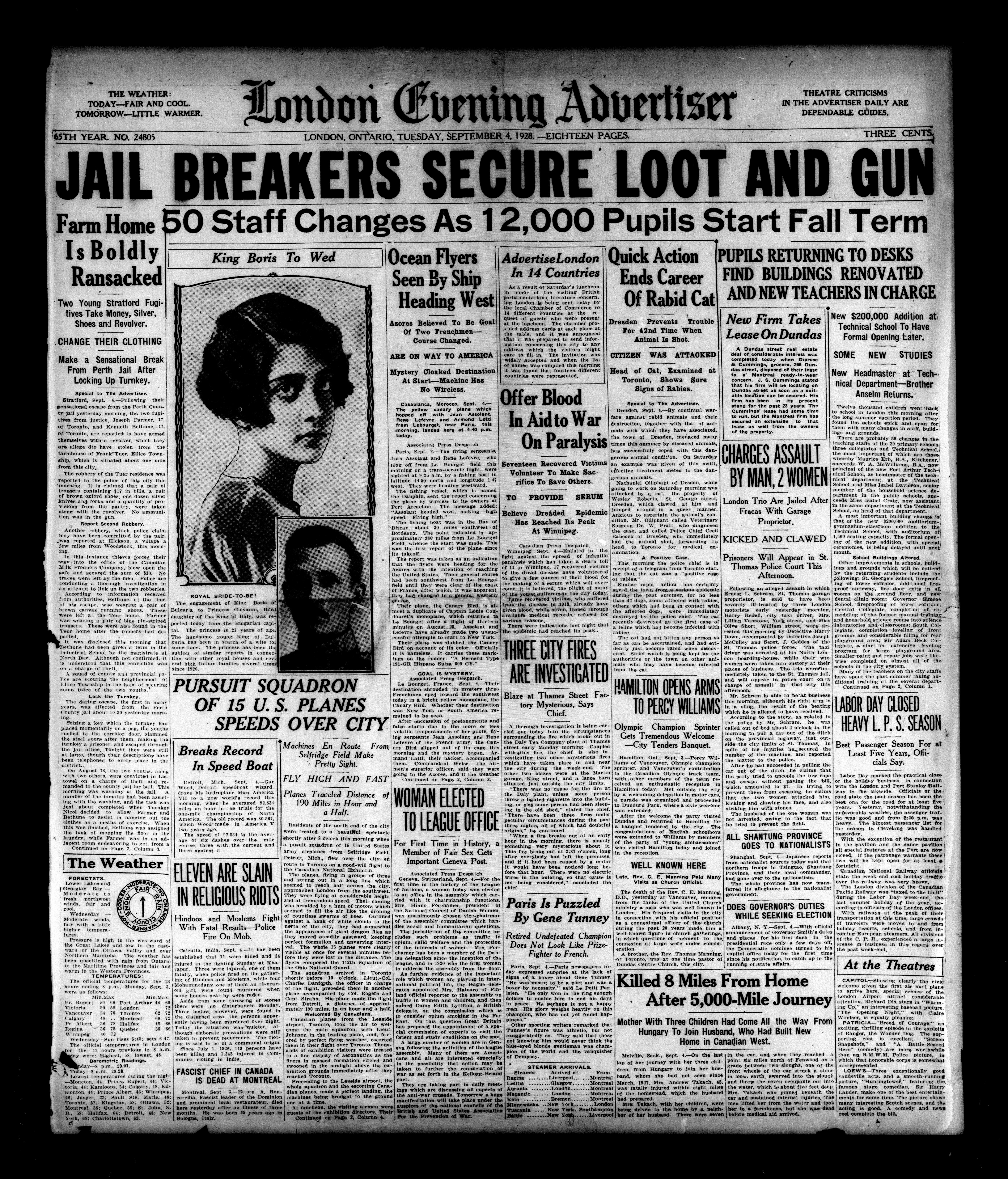 London Evening Advertiser. : London evening advertiser : 65th Year, No. 24805 (September 4, 1928)