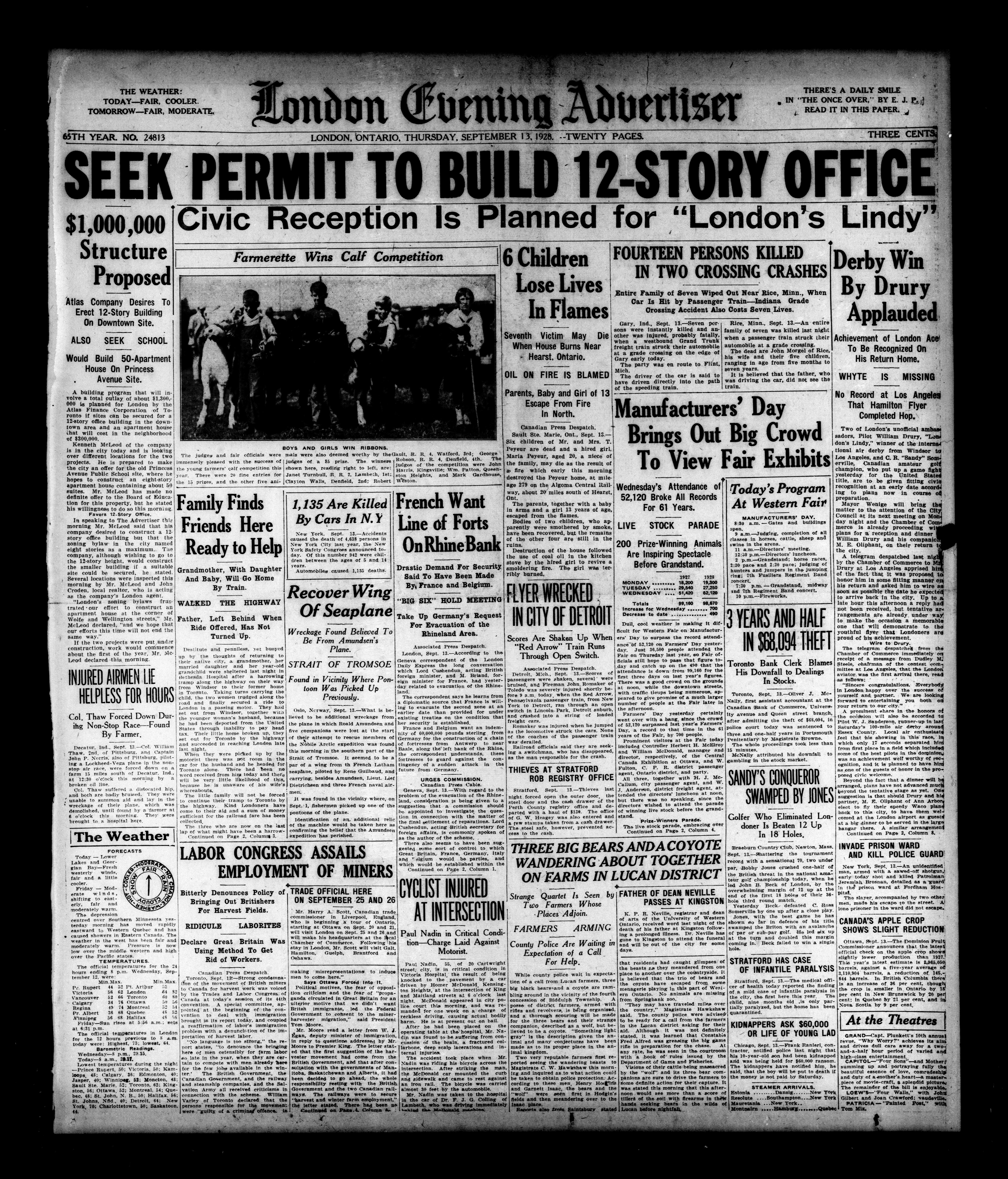 London Evening Advertiser. : London evening advertiser : 65th Year, No. 24813 (September 13, 1928)