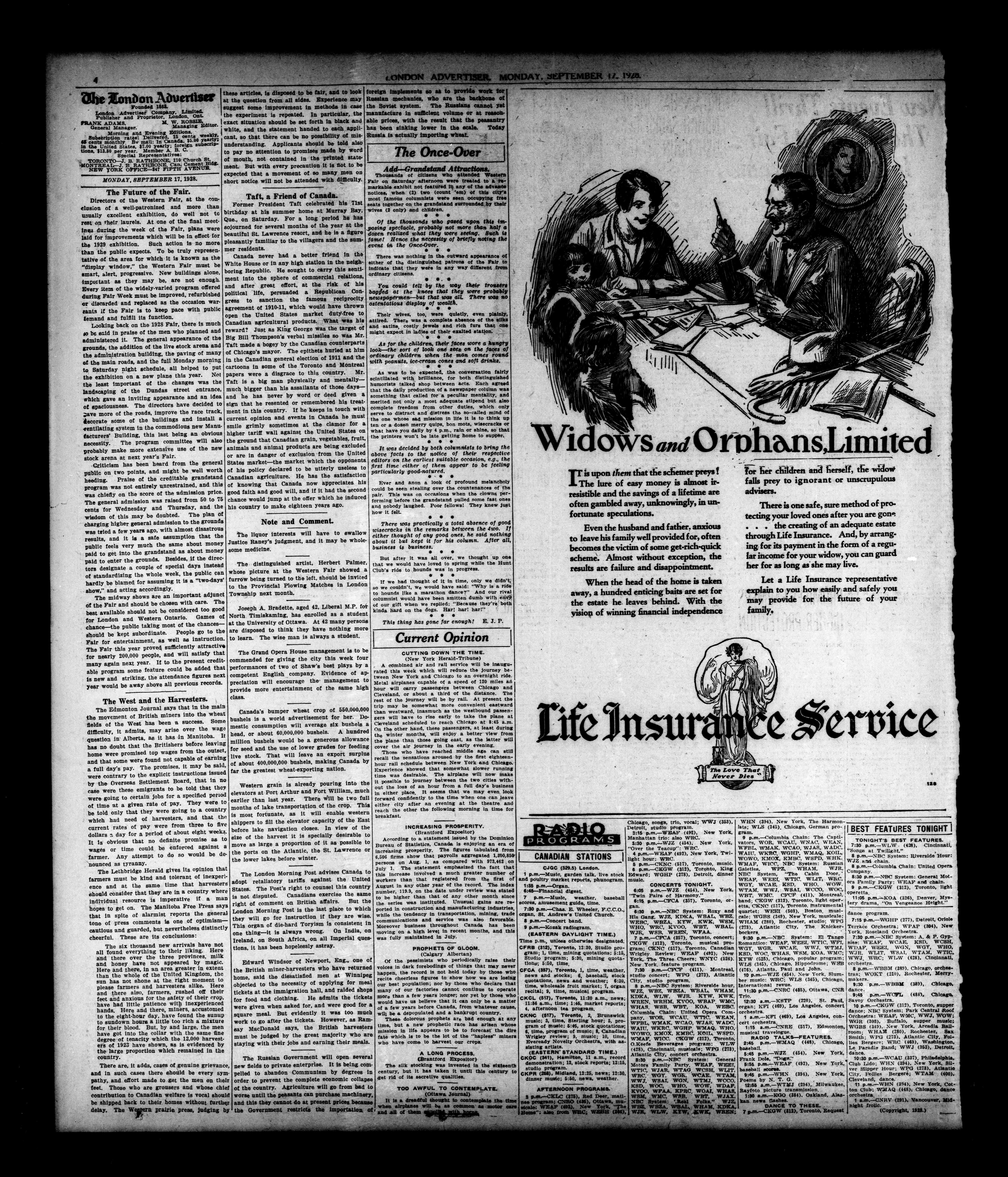 London, Ontario : London Advertiser Company, Limited, [1928]; 14 images, 0 avec recherche en texte intégral