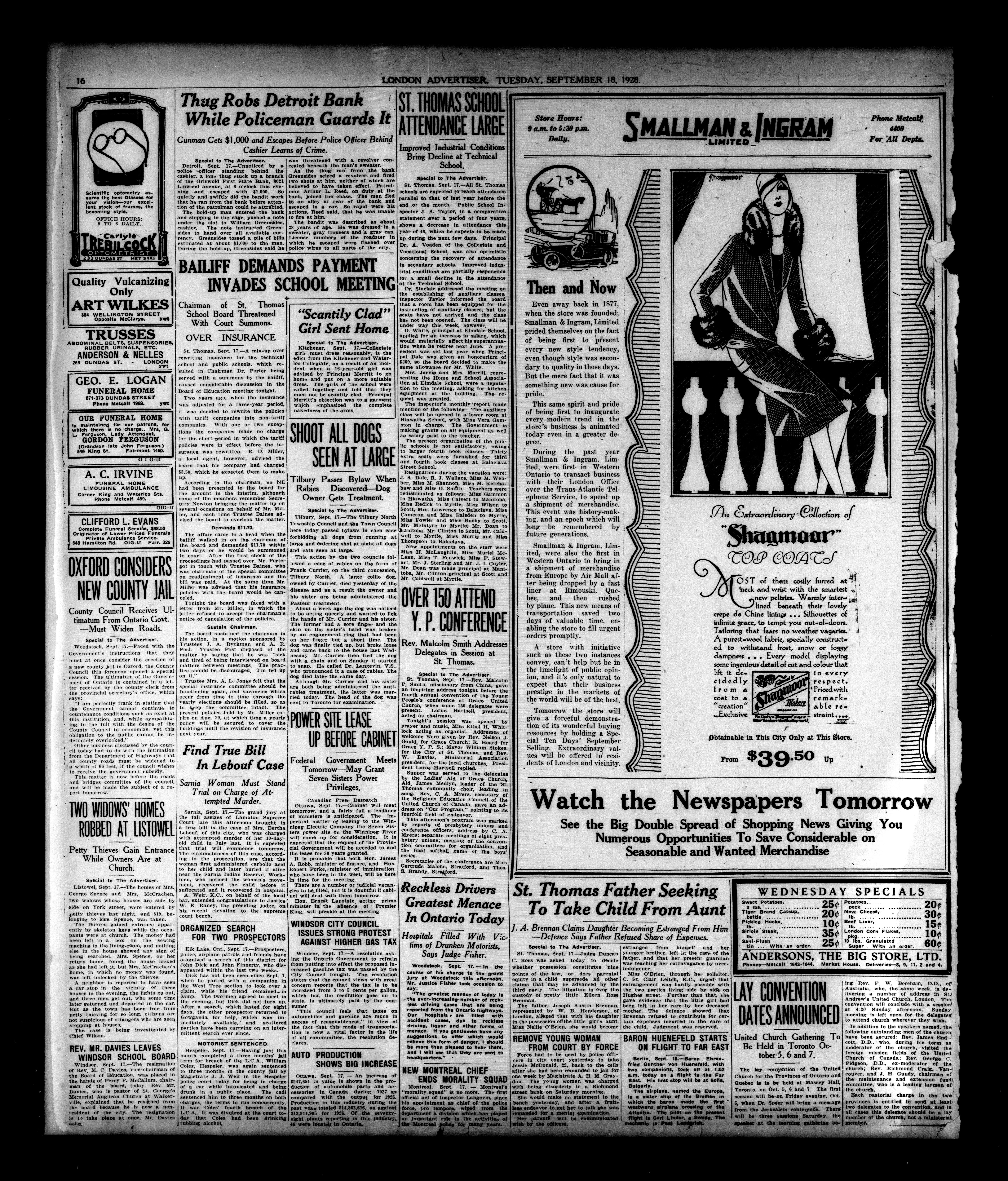 London, Ontario : London Advertiser Company, Limited, [1928]; 16 images, 0 avec recherche en texte intégral