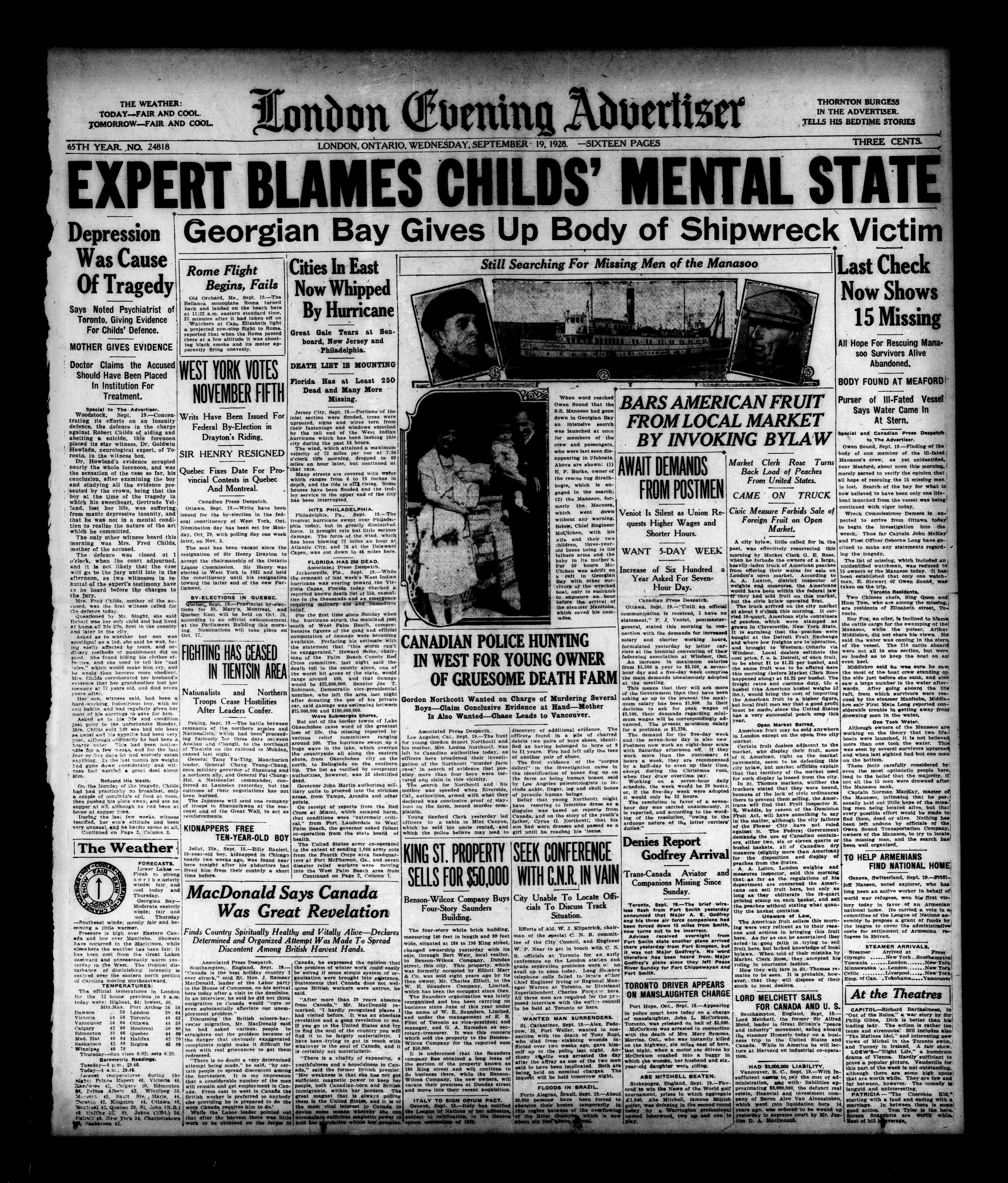 London, Ontario : London Advertiser Company, Limited, [1928]; 16 images, 0 avec recherche en texte intégral