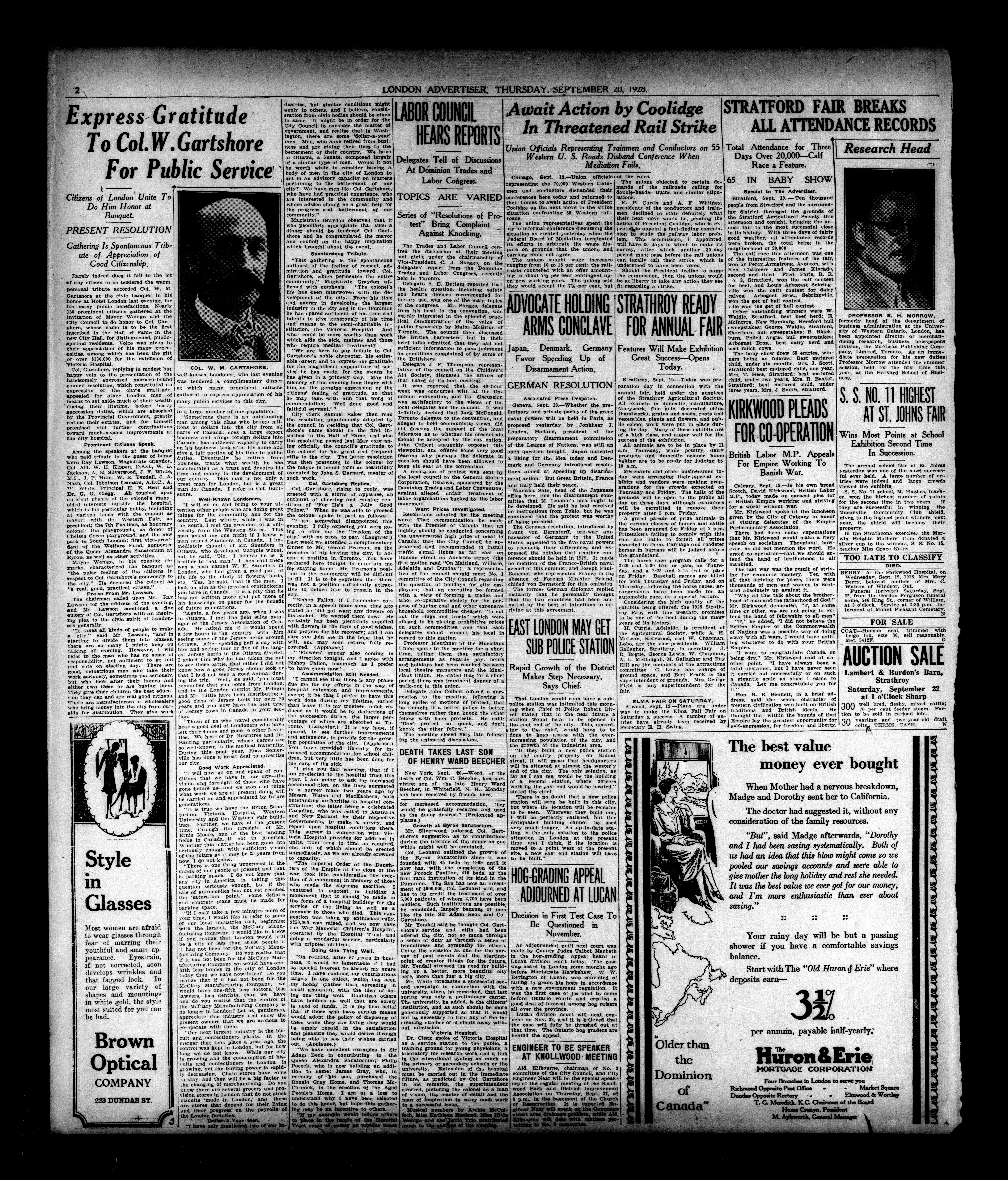 London, Ontario : London Advertiser Company, Limited, [1928]; 22 images, 0 avec recherche en texte intégral