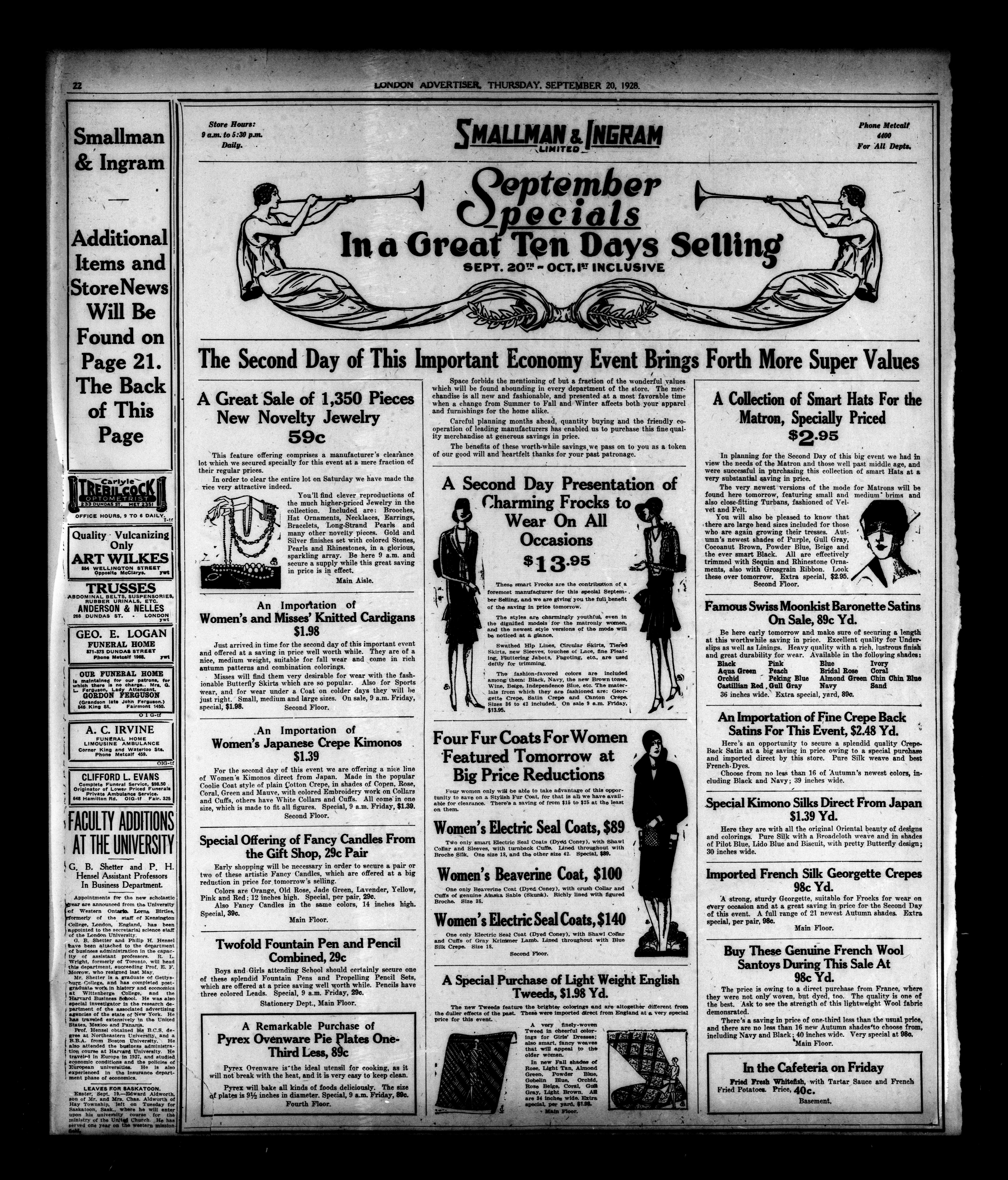 London, Ontario : London Advertiser Company, Limited, [1928]; 22 images, 0 avec recherche en texte intégral