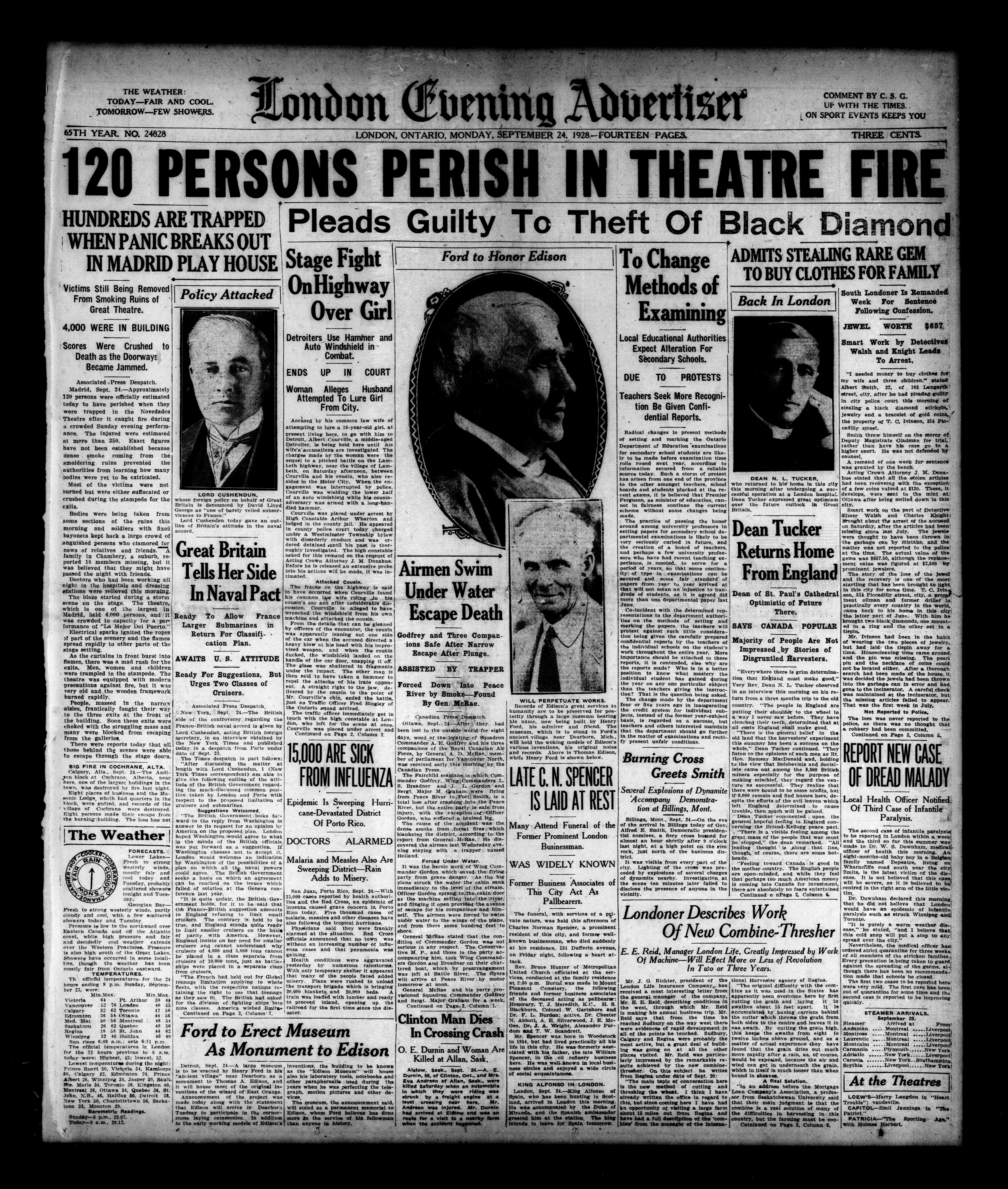 London, Ontario : London Advertiser Company, Limited, [1928]; 14 images, 0 avec recherche en texte intégral