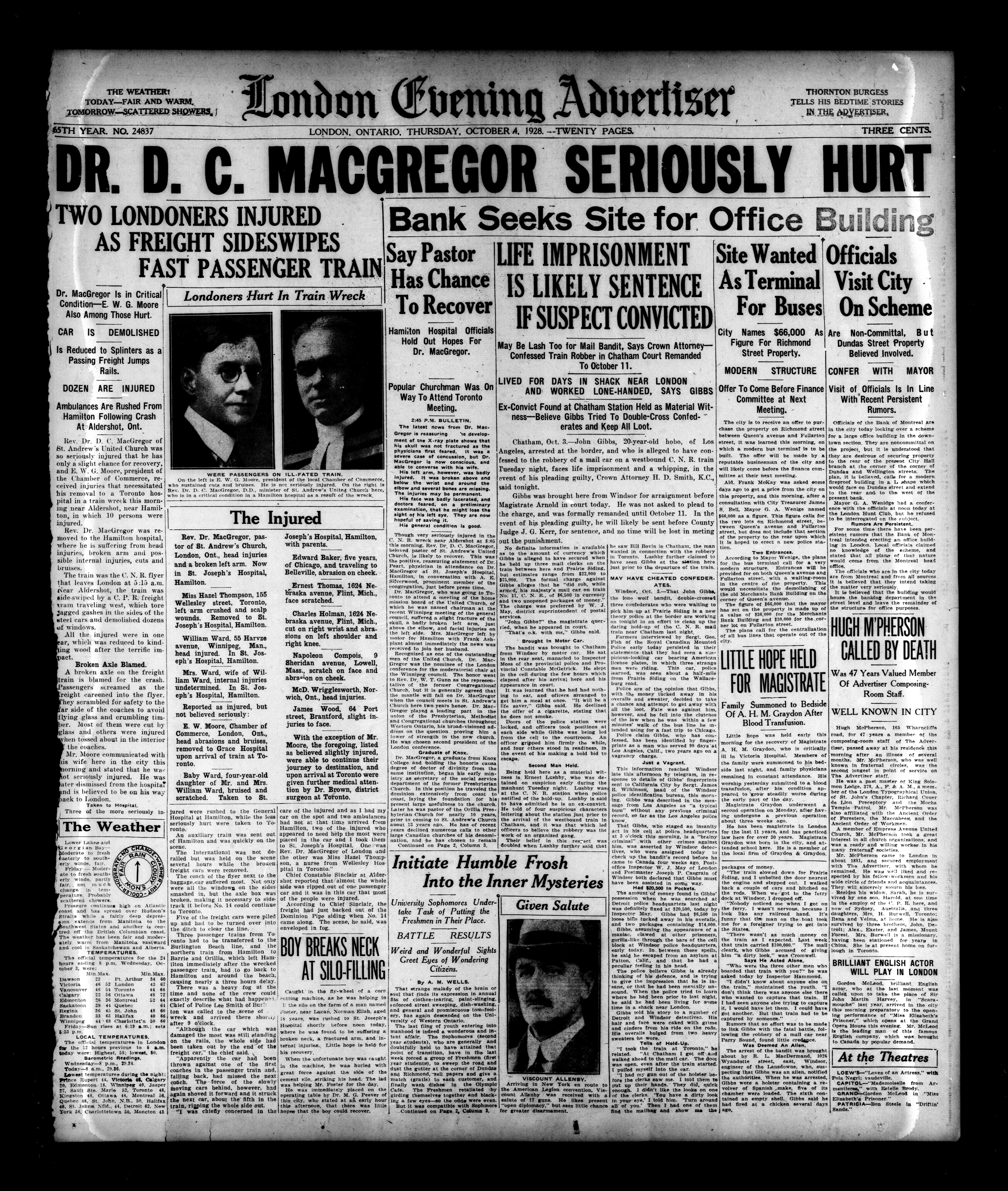London, Ontario : London Advertiser Company, Limited, [1928]; 20 images, 0 avec recherche en texte intégral