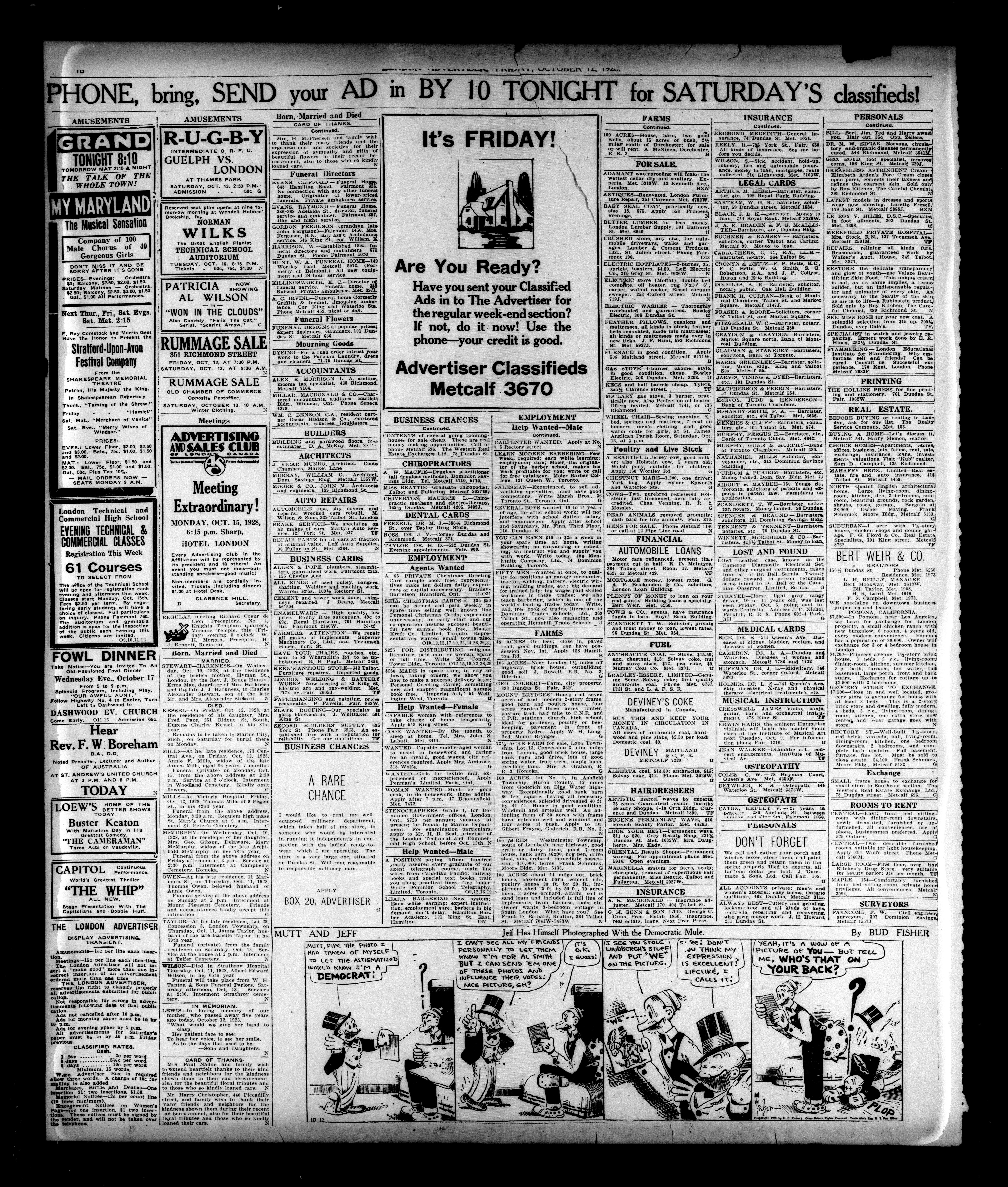 Aide London, Ontario : London Advertiser Company, Limited, [1928]; 20 images, 0 avec recherche en texte intégral