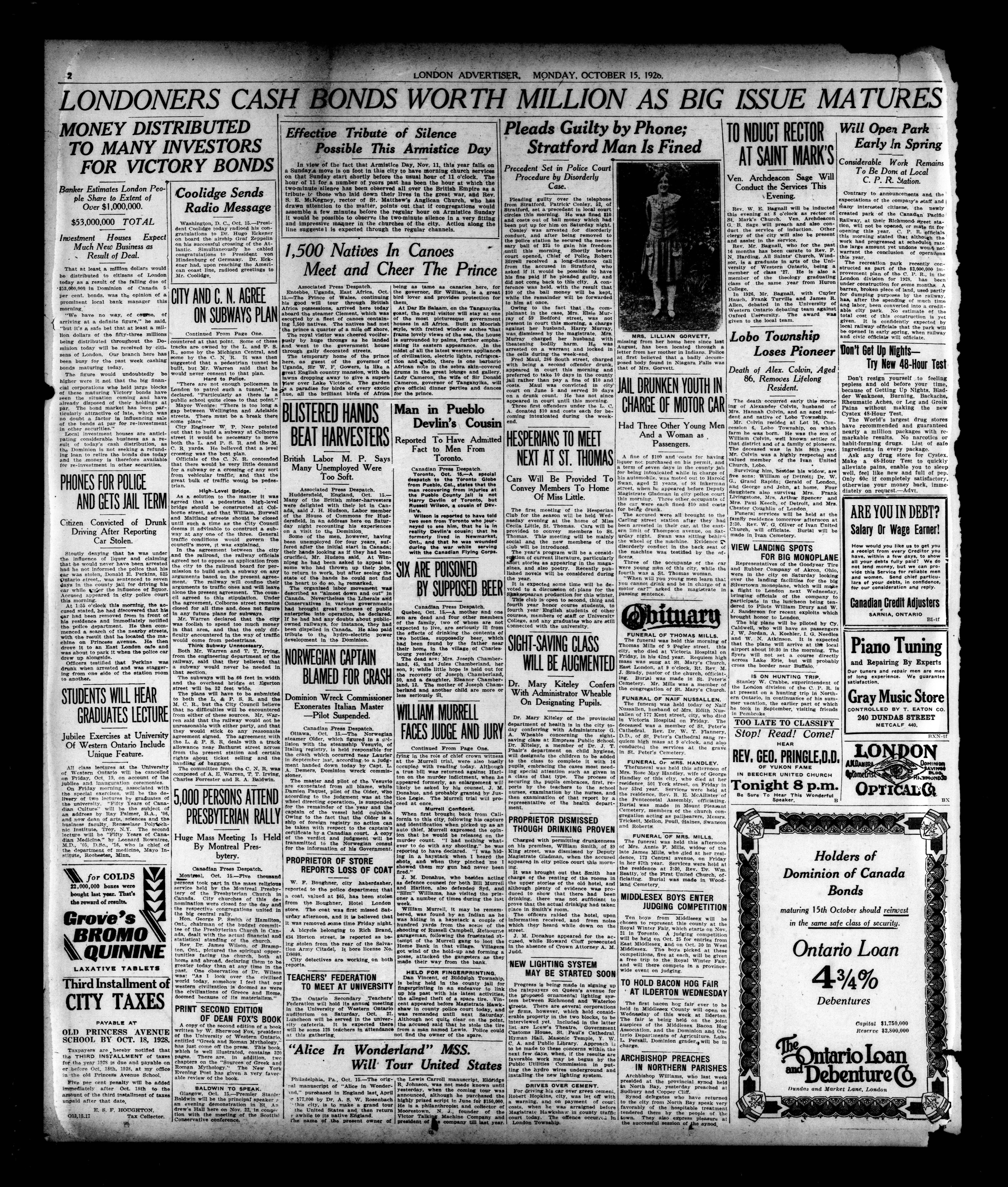 London, Ontario : London Advertiser Company, Limited, [1928]; 14 images, 0 avec recherche en texte intégral