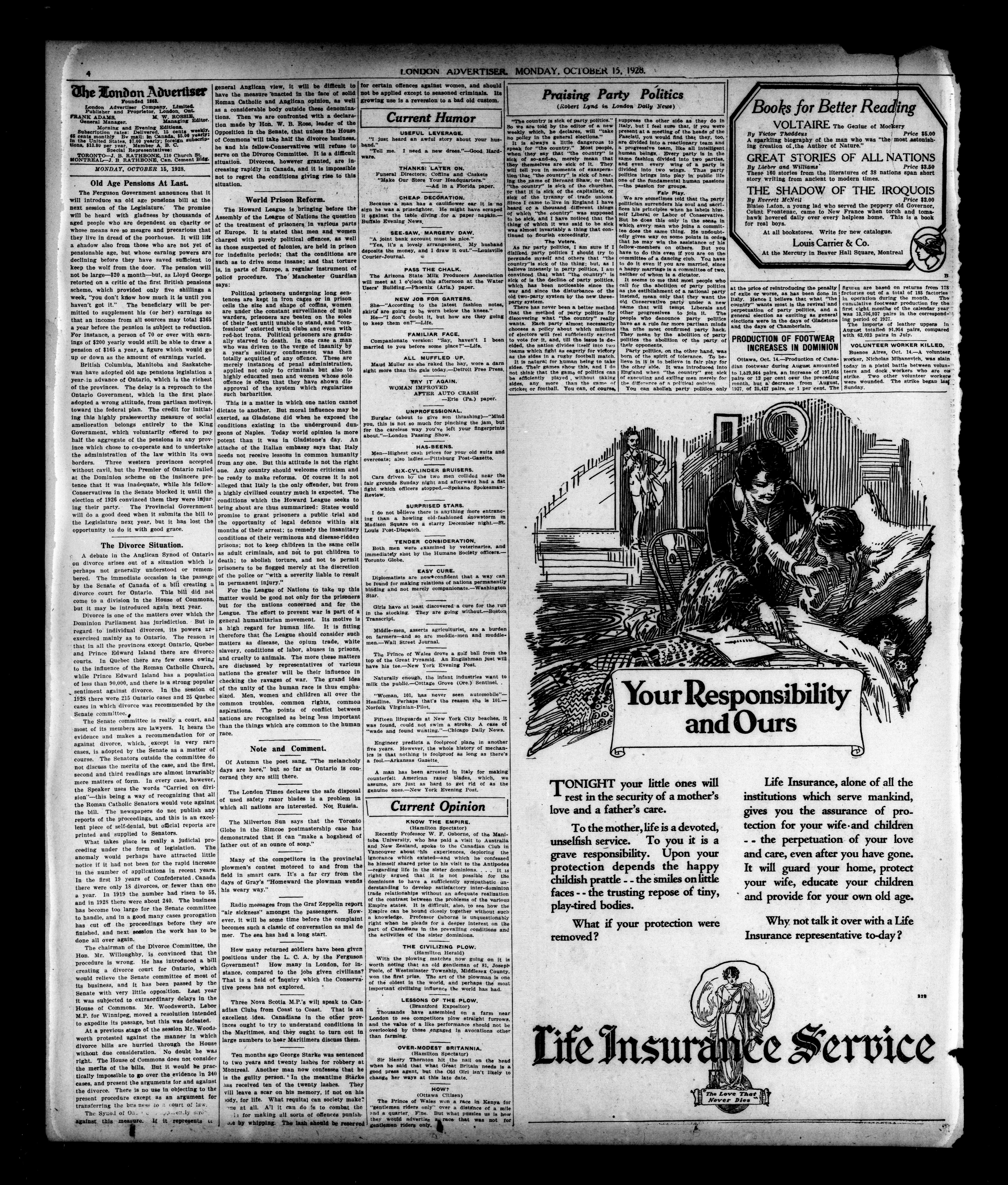 London, Ontario : London Advertiser Company, Limited, [1928]; 14 images, 0 avec recherche en texte intégral