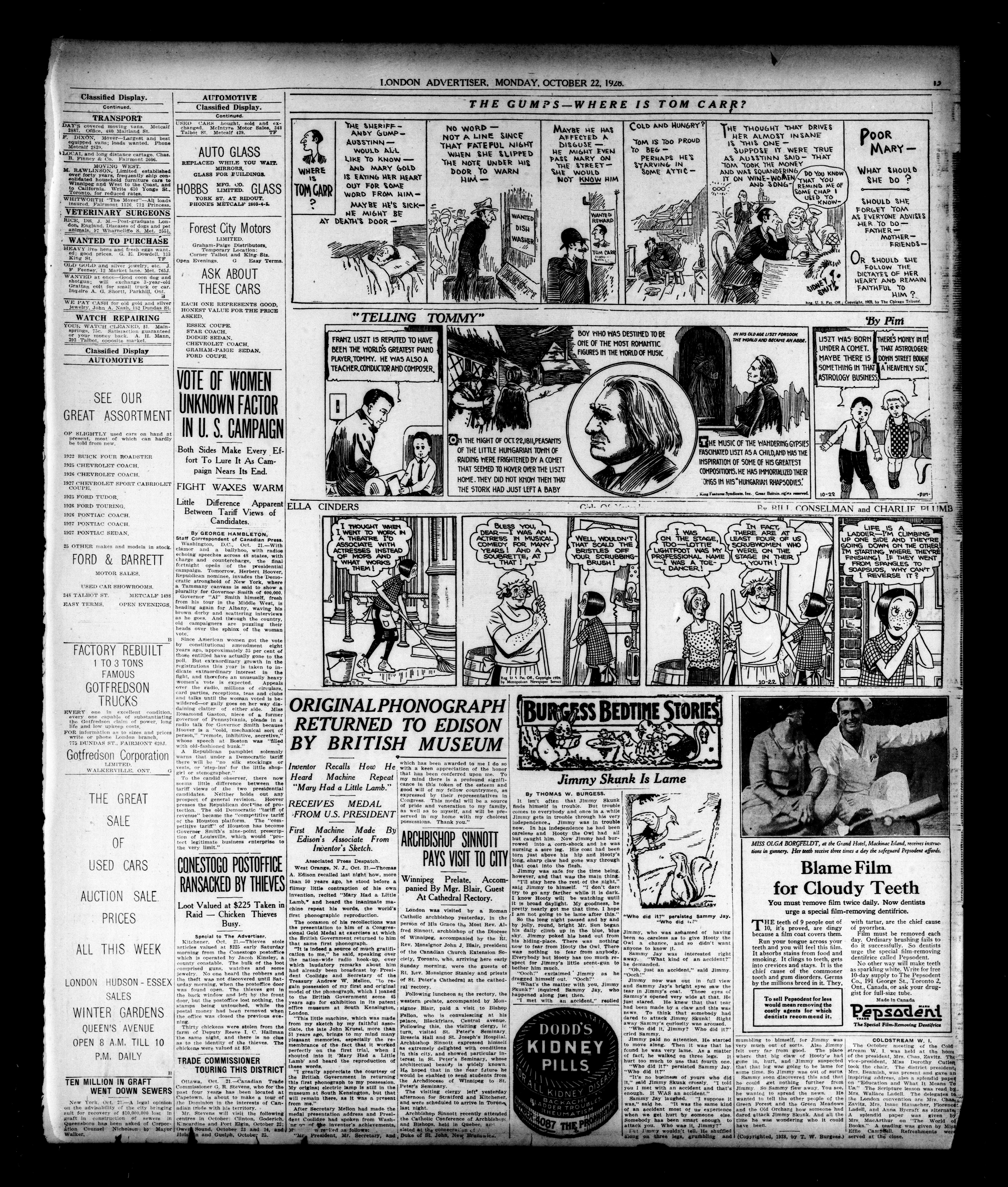 London, Ontario : London Advertiser Company, Limited, [1928]; 14 images, 0 avec recherche en texte intégral