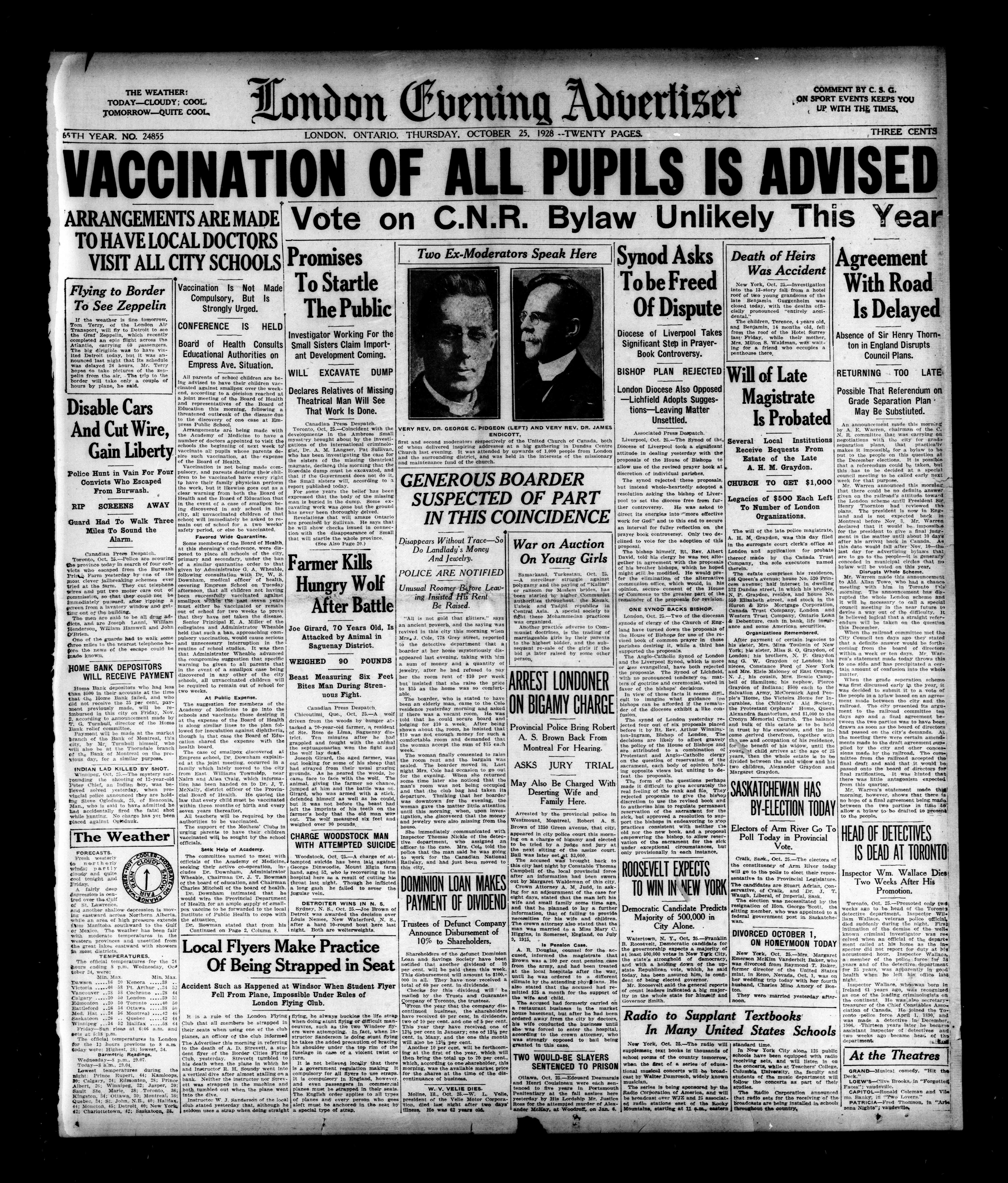 London, Ontario : London Advertiser Company, Limited, [1928]; 20 images, 0 avec recherche en texte intégral