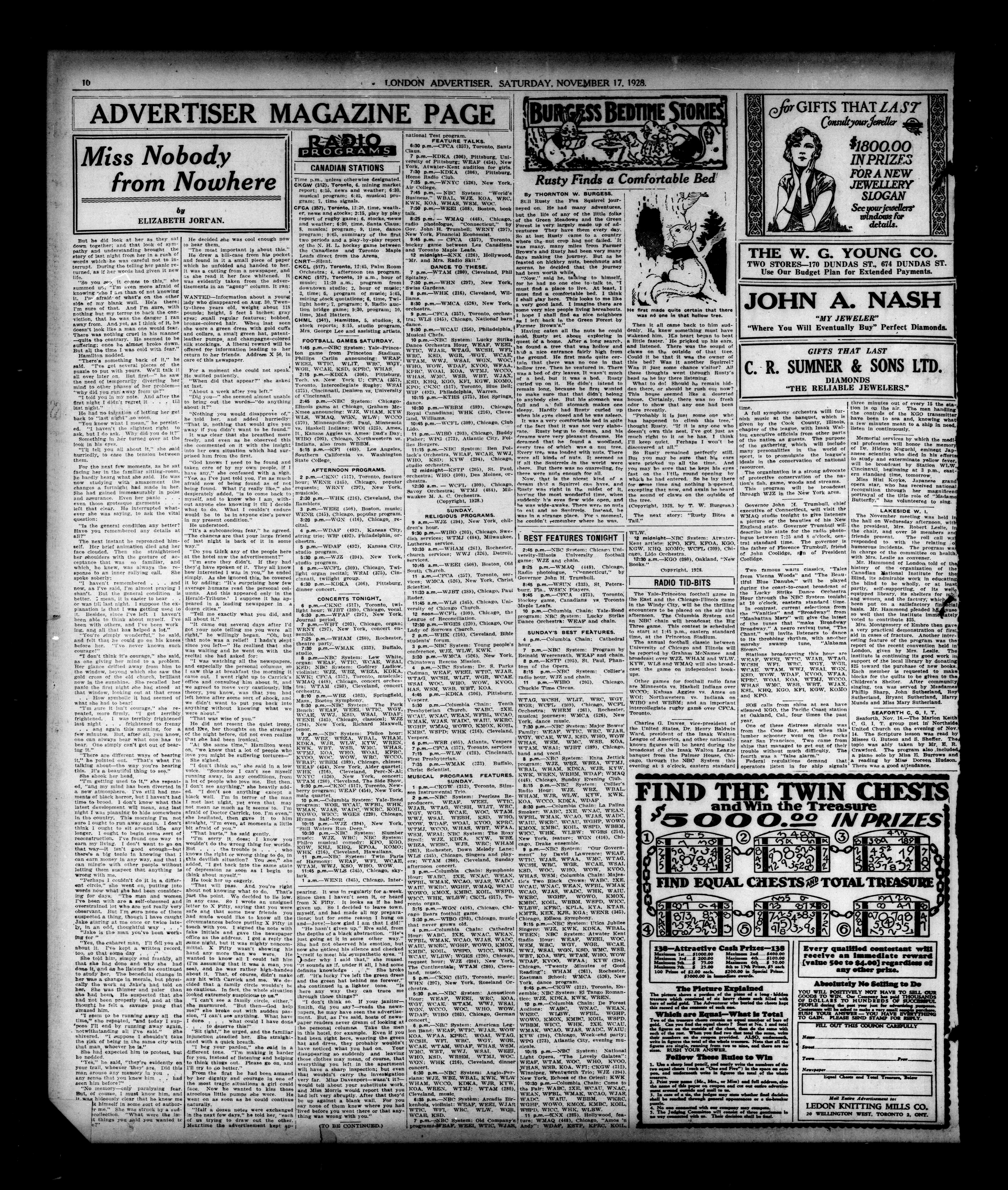 London, Ontario : London Advertiser Company, Limited, [1928]; 22 images, 0 avec recherche en texte intégral