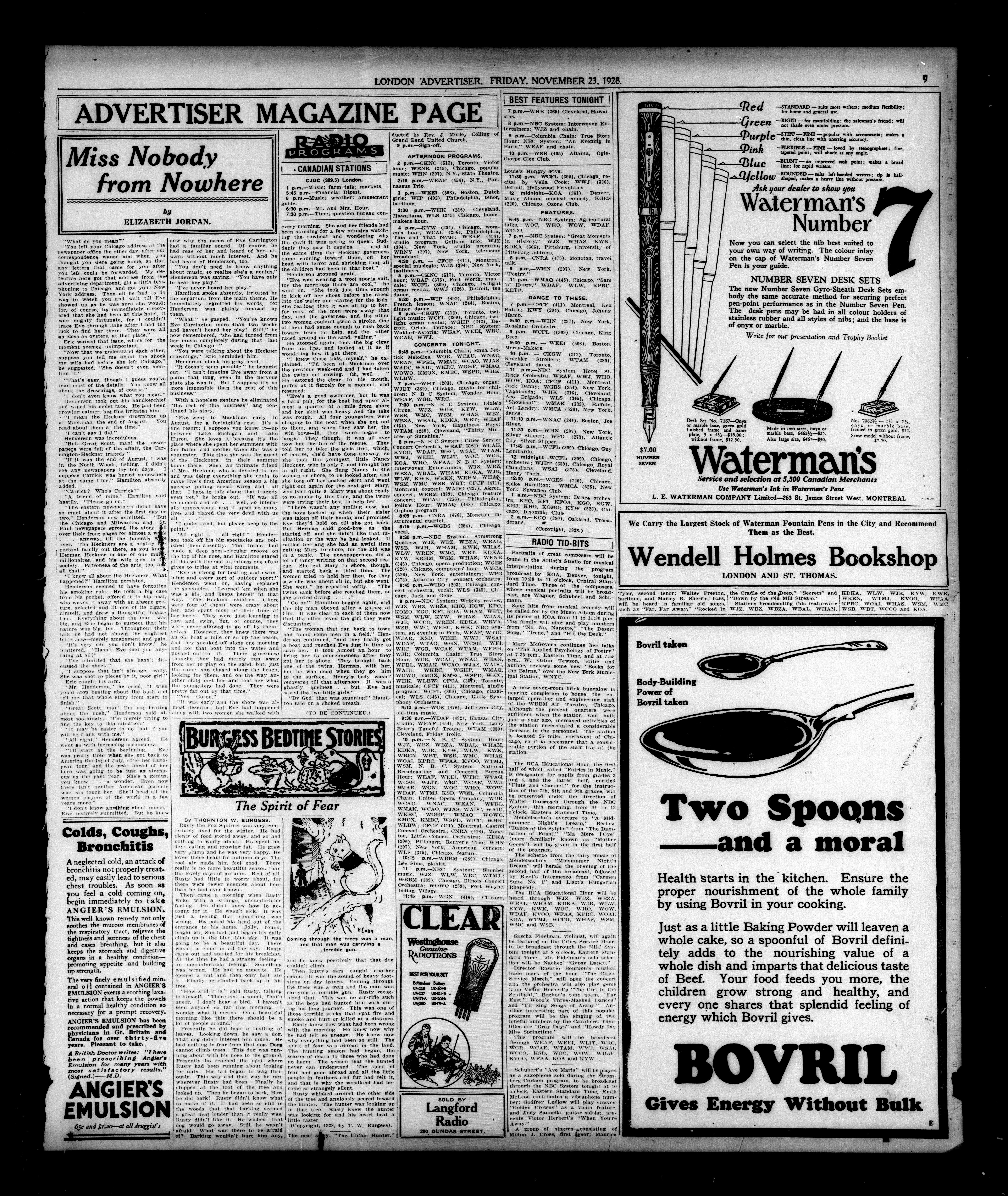 London, Ontario : London Advertiser Company, Limited, [1928]; 18 images, 0 avec recherche en texte intégral