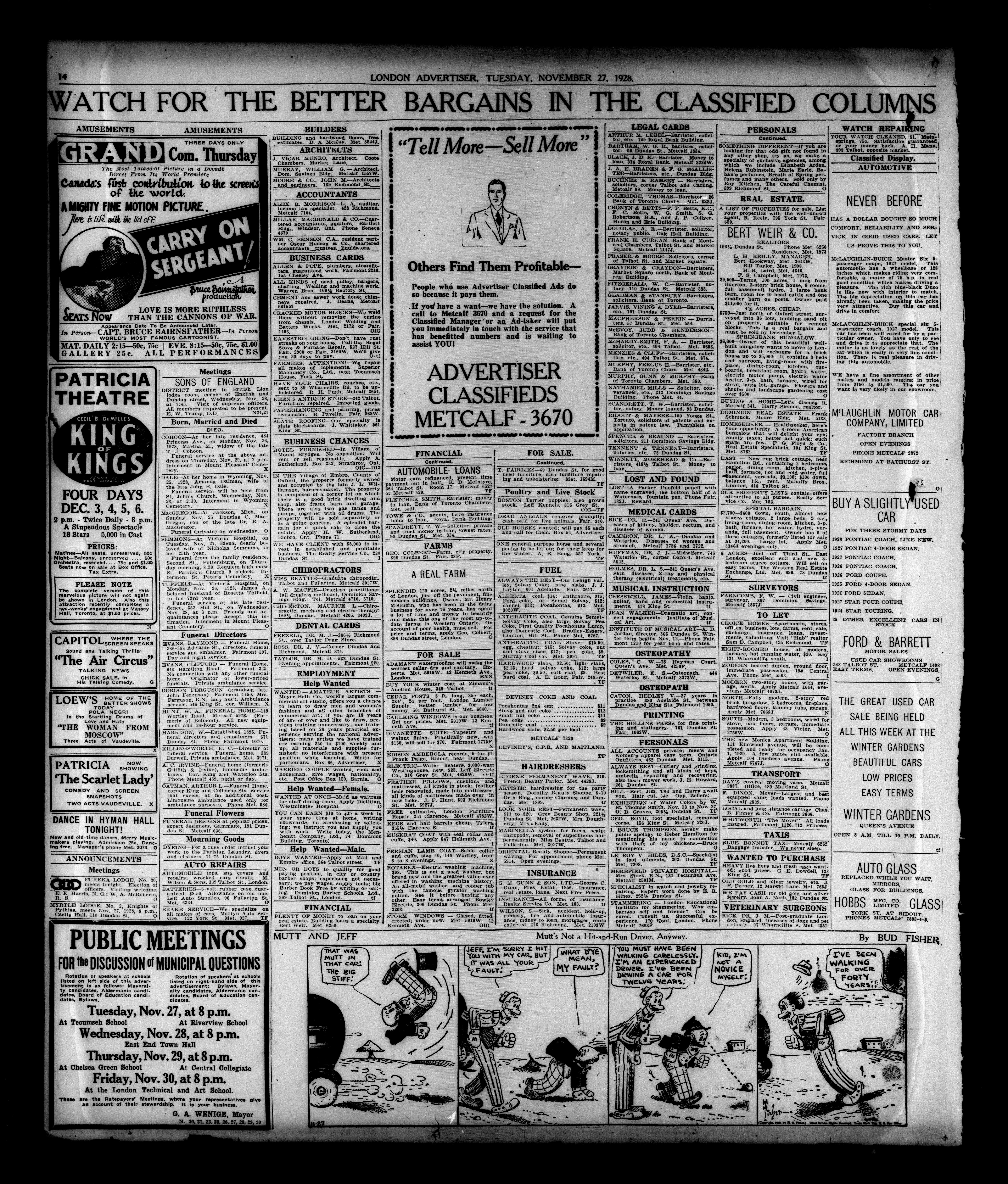 London, Ontario : London Advertiser Company, Limited, [1928]; 16 images, 0 avec recherche en texte intégral