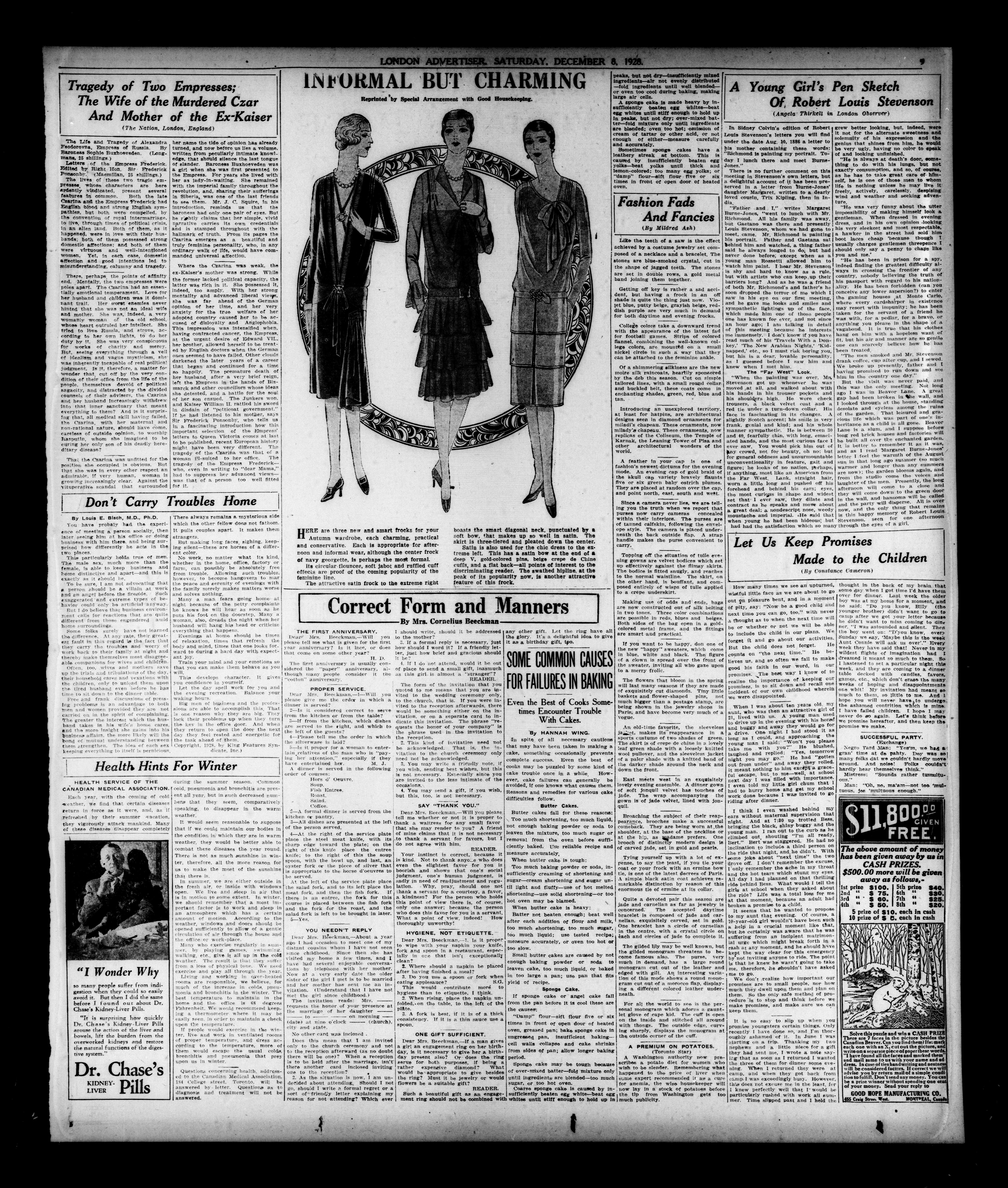 London, Ontario : London Advertiser Company, Limited, [1928]; 20 images, 0 avec recherche en texte intégral