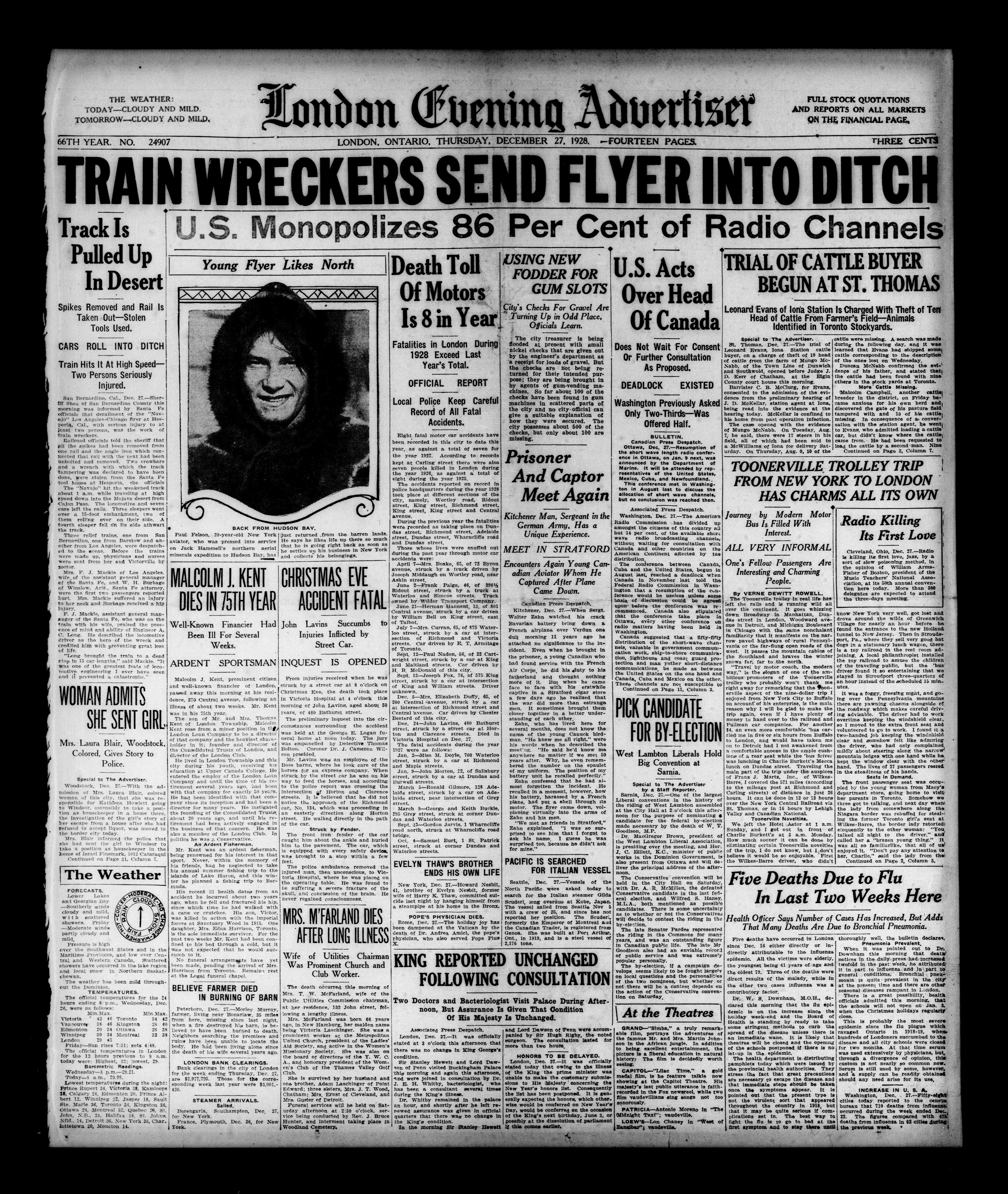 London, Ontario : London Advertiser Company, Limited, [1928]; 14 images, 0 avec recherche en texte intégral