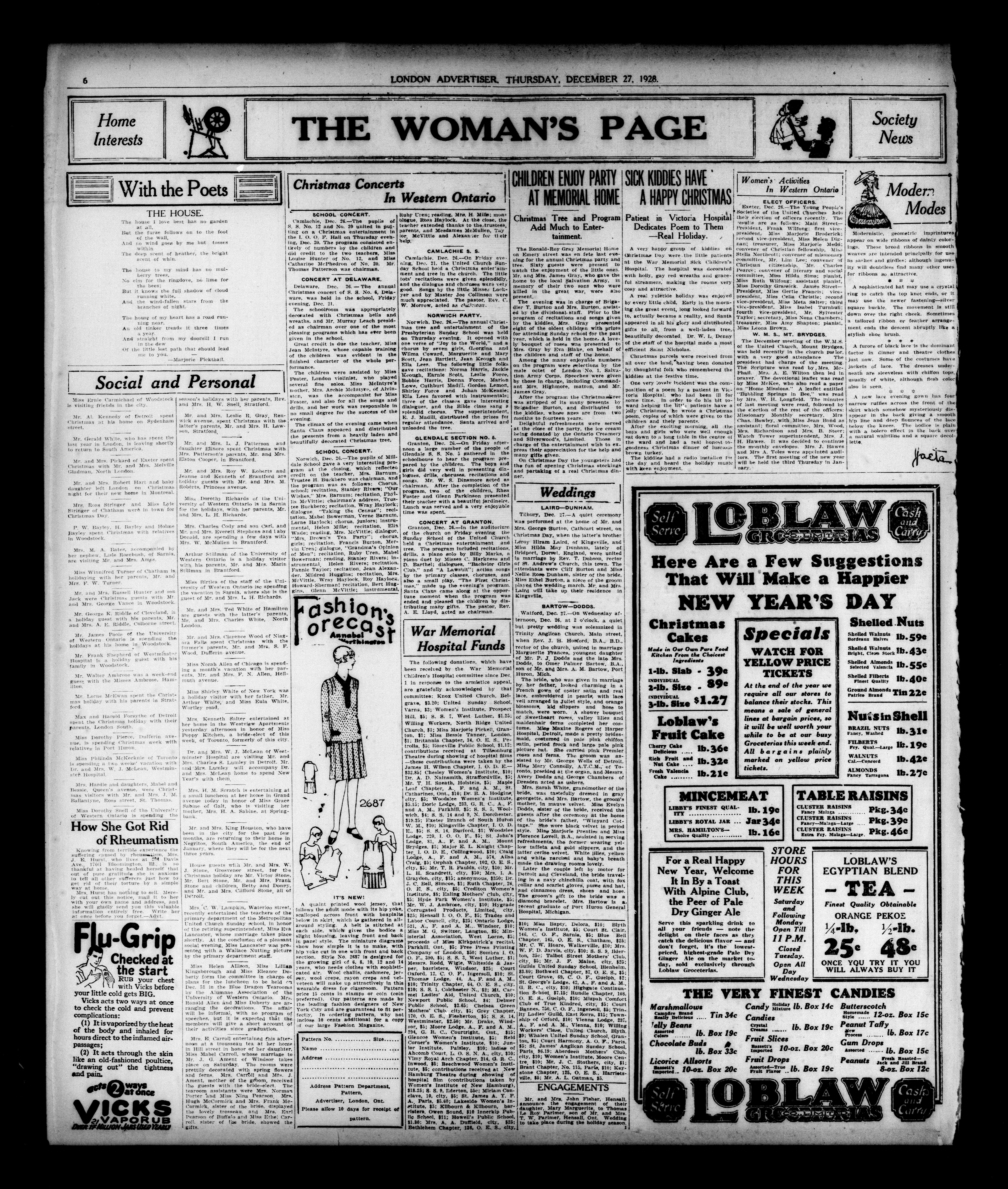 London, Ontario : London Advertiser Company, Limited, [1928]; 14 images, 0 avec recherche en texte intégral