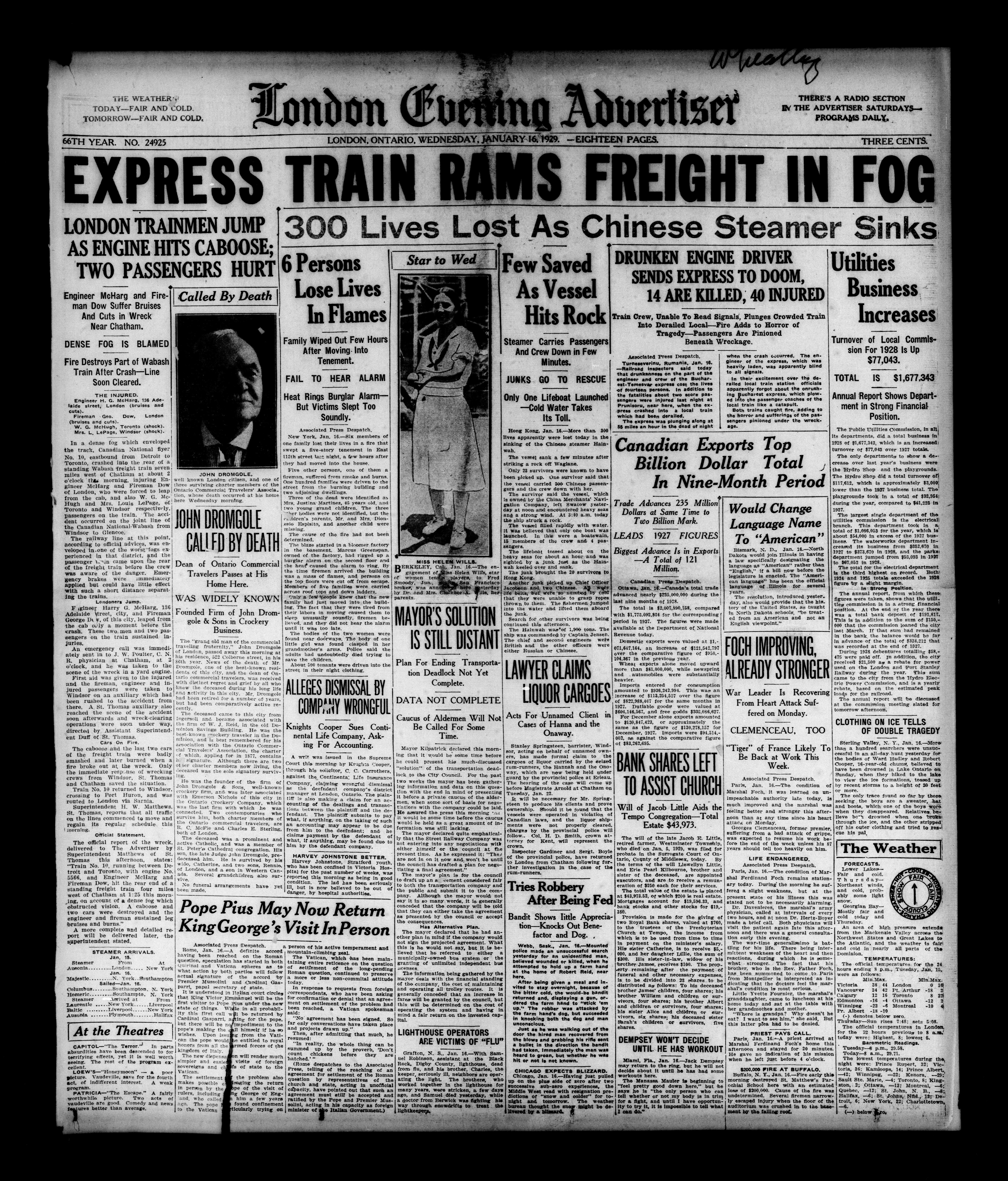 London, Ontario : London Advertiser Company, Limited, [1929]; 18 images, 0 avec recherche en texte intégral