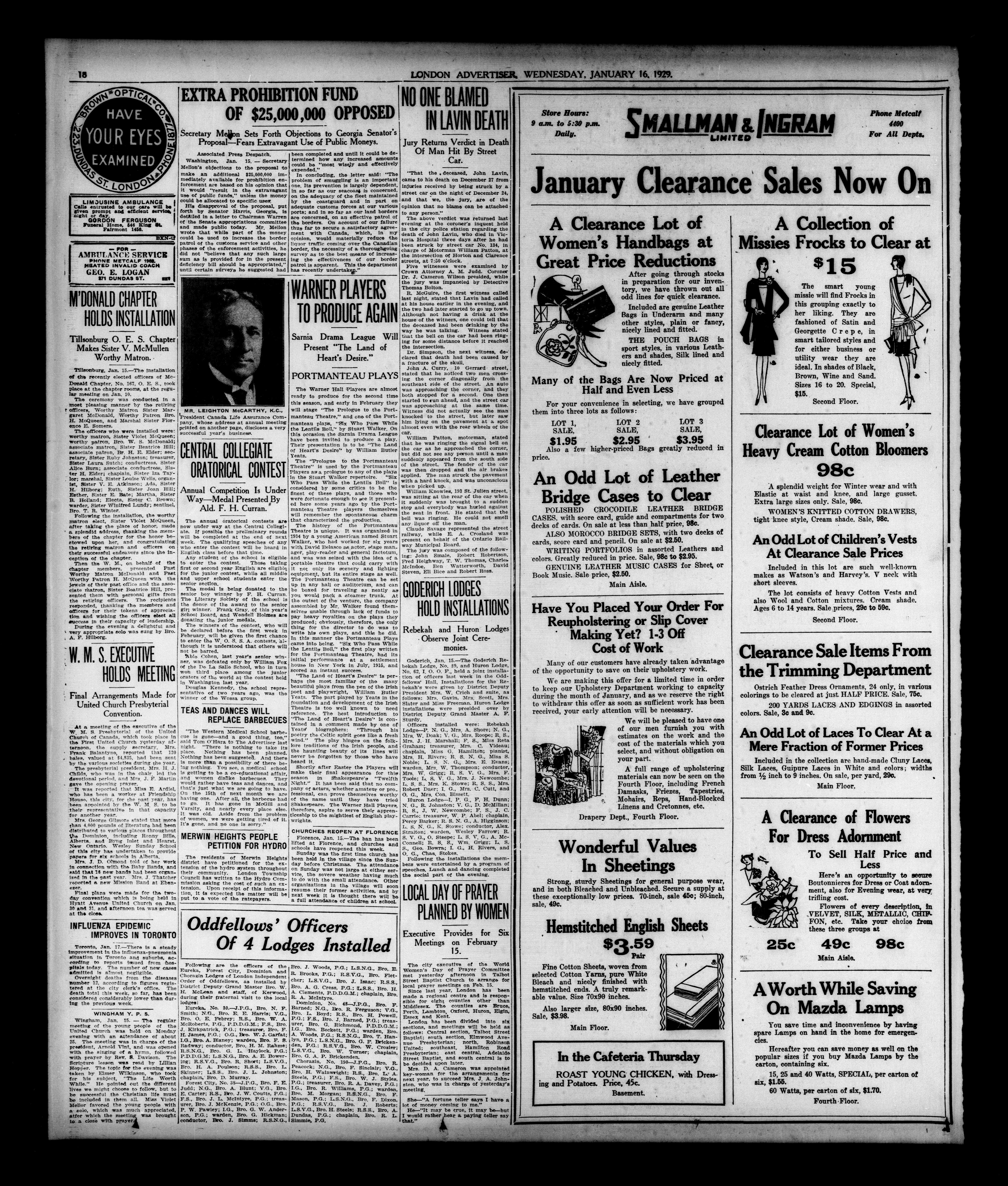 London, Ontario : London Advertiser Company, Limited, [1929]; 18 images, 0 avec recherche en texte intégral