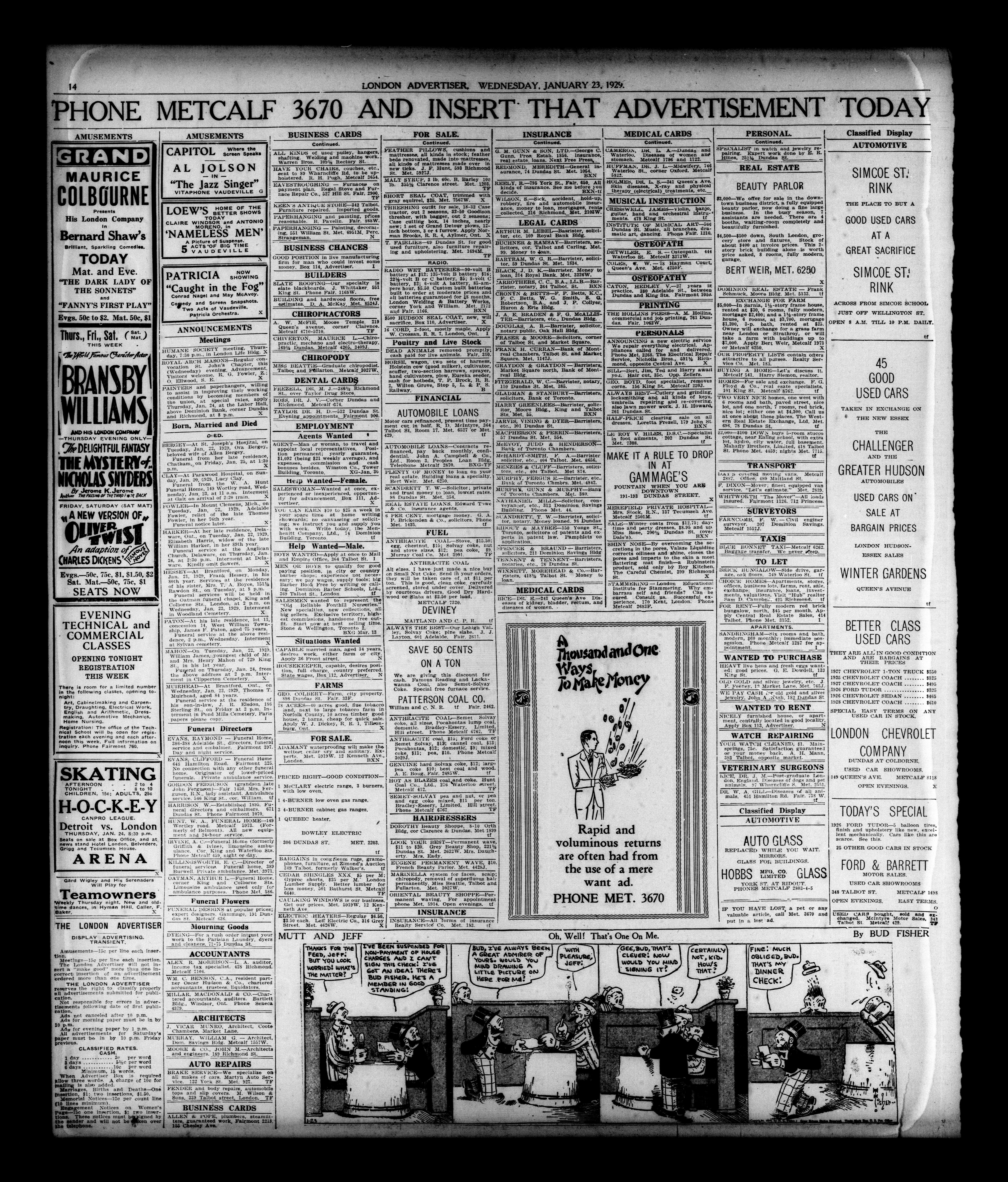 London, Ontario : London Advertiser Company, Limited, [1929]; 16 images, 0 avec recherche en texte intégral