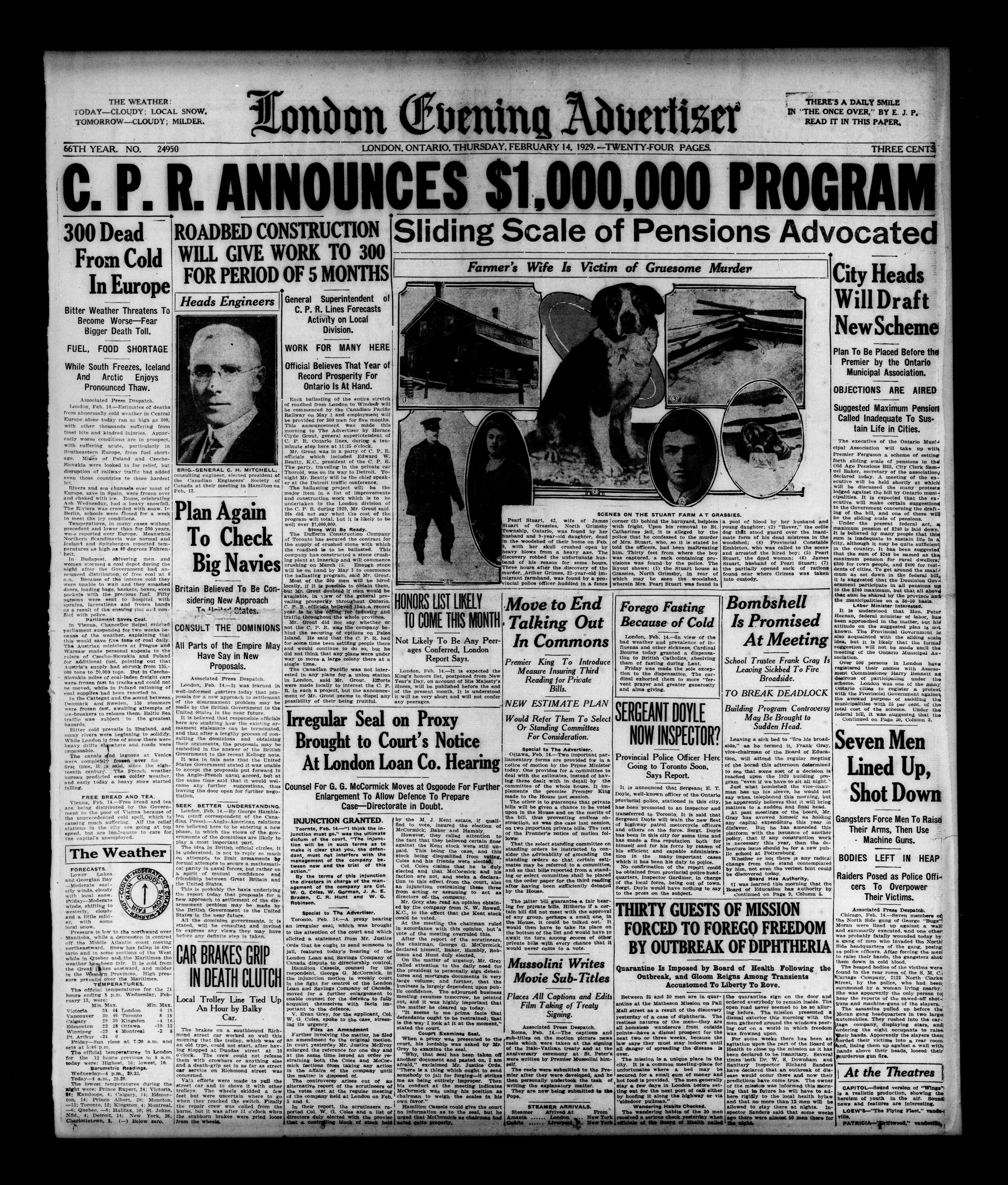 London, Ontario : London Advertiser Company, Limited, [1929]; 24 images, 0 avec recherche en texte intégral