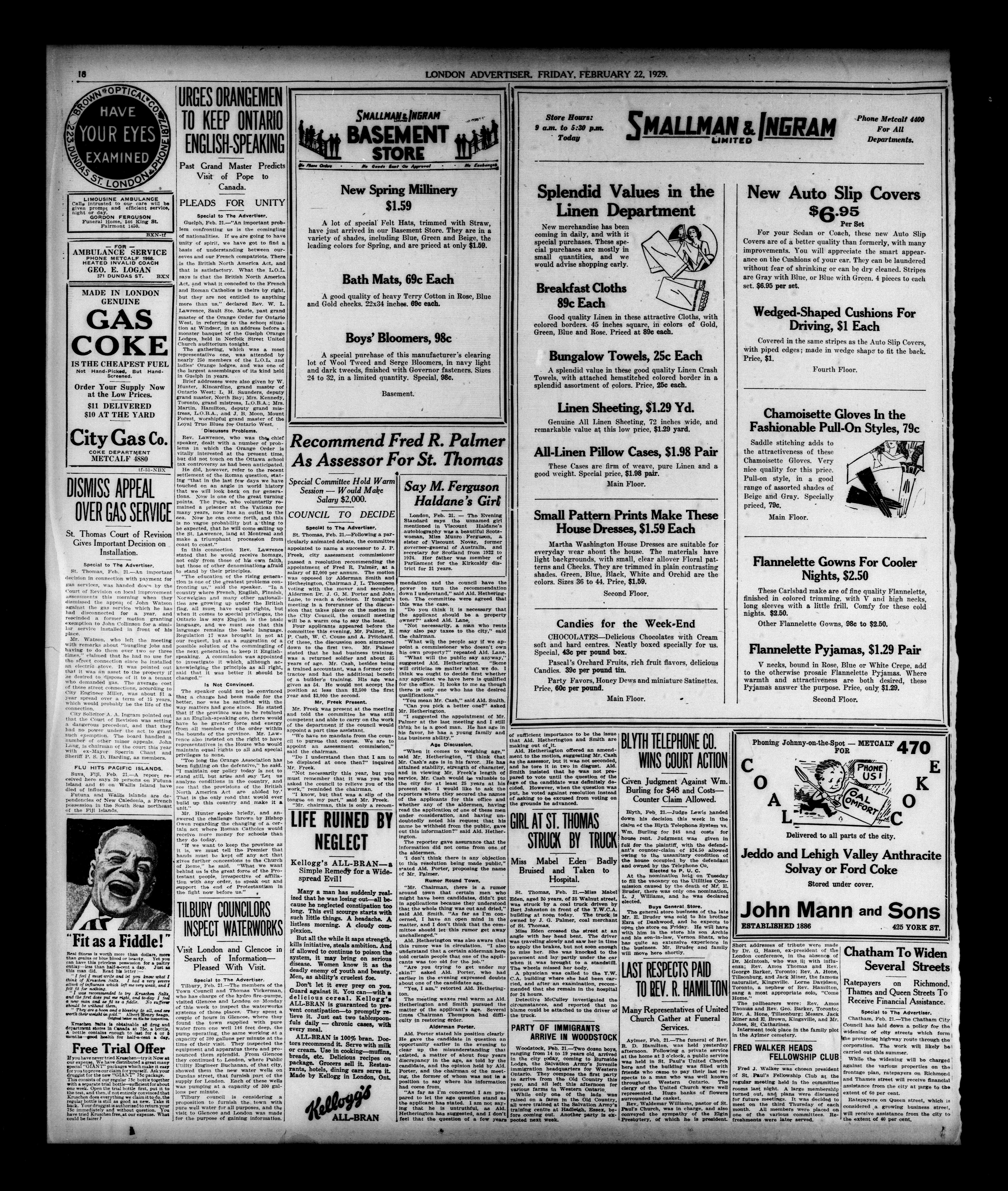 London, Ontario : London Advertiser Company, Limited, [1929]; 18 images, 0 avec recherche en texte intégral