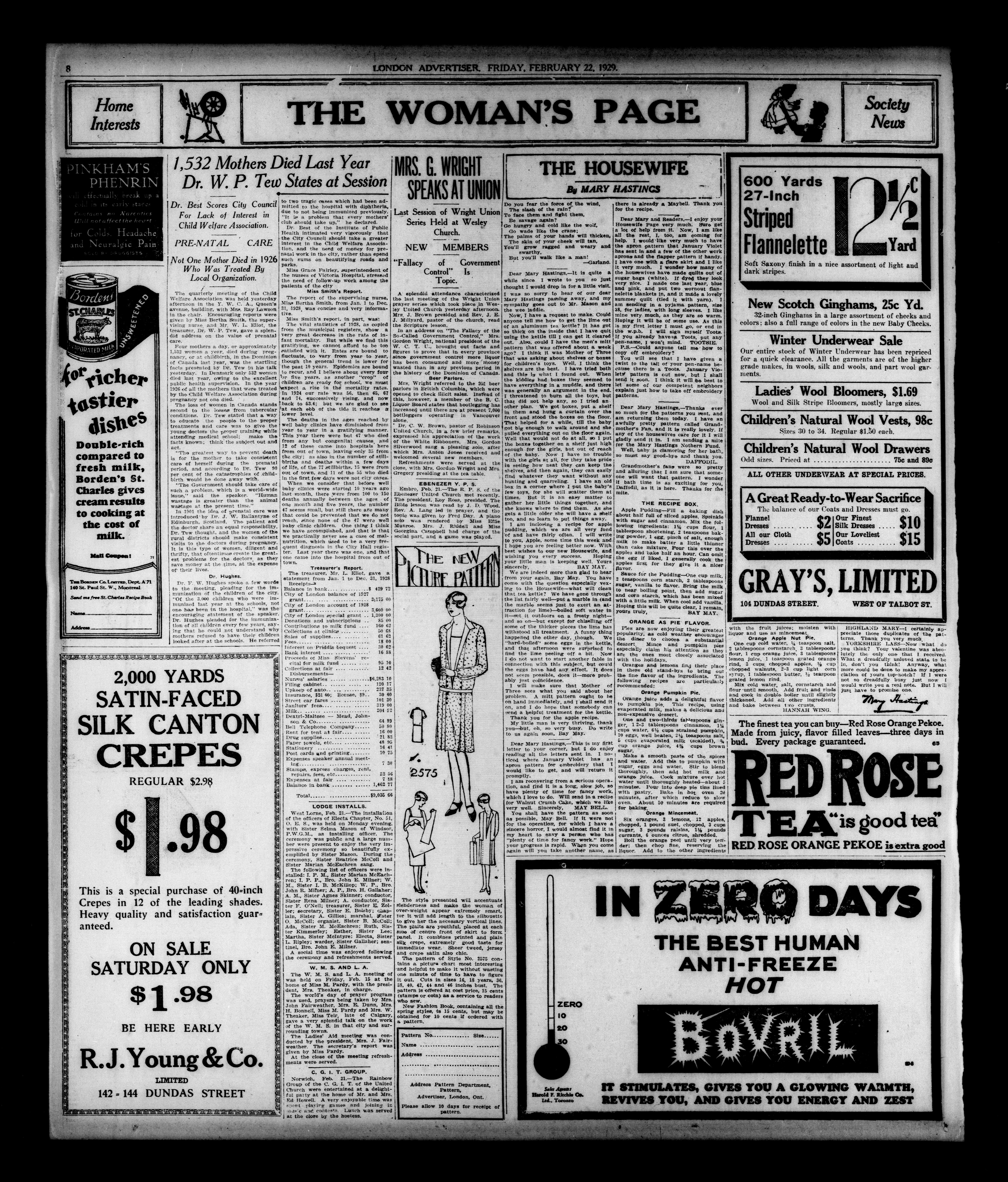 London, Ontario : London Advertiser Company, Limited, [1929]; 18 images, 0 avec recherche en texte intégral