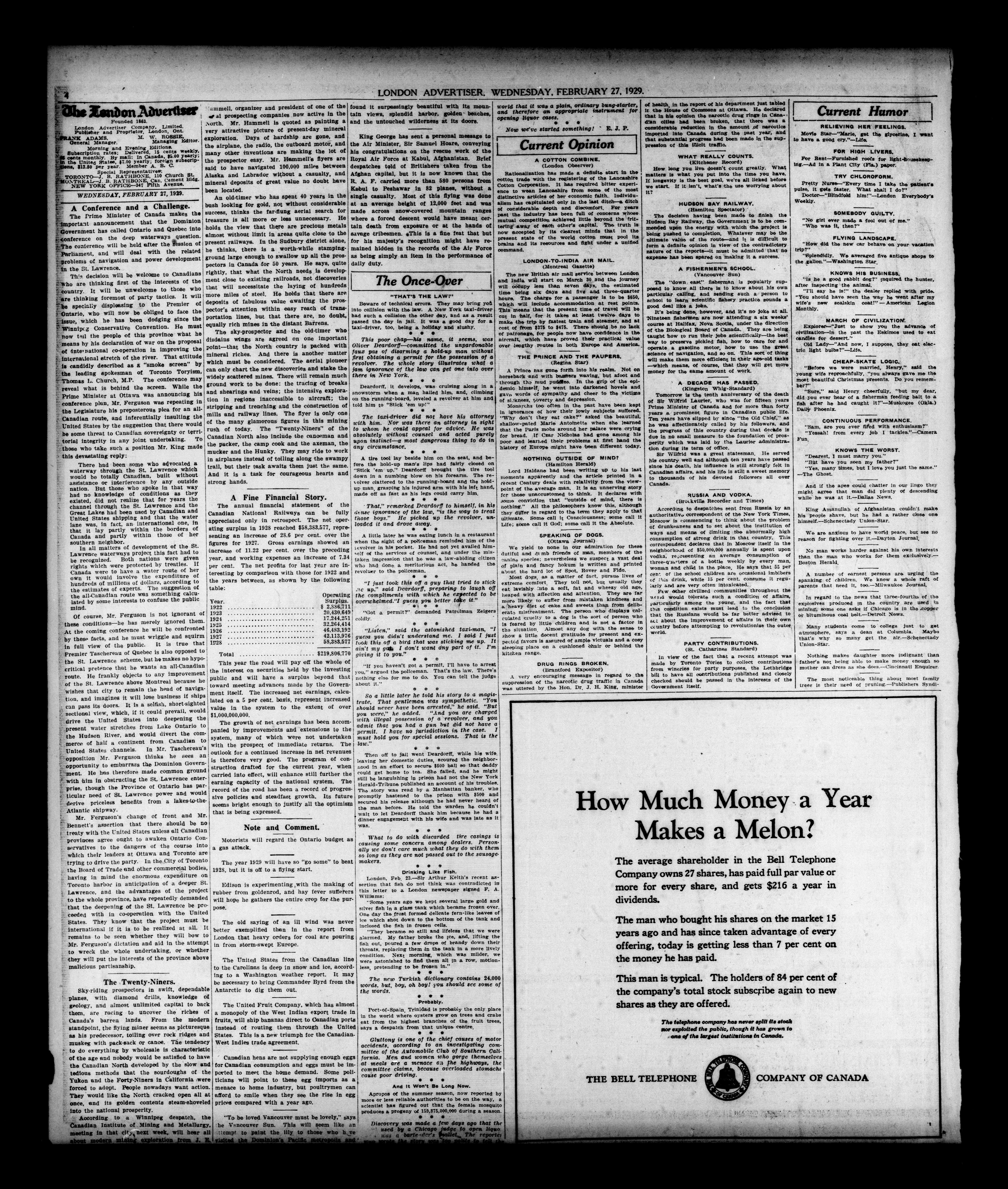 London, Ontario : London Advertiser Company, Limited, [1929]; 18 images, 0 avec recherche en texte intégral