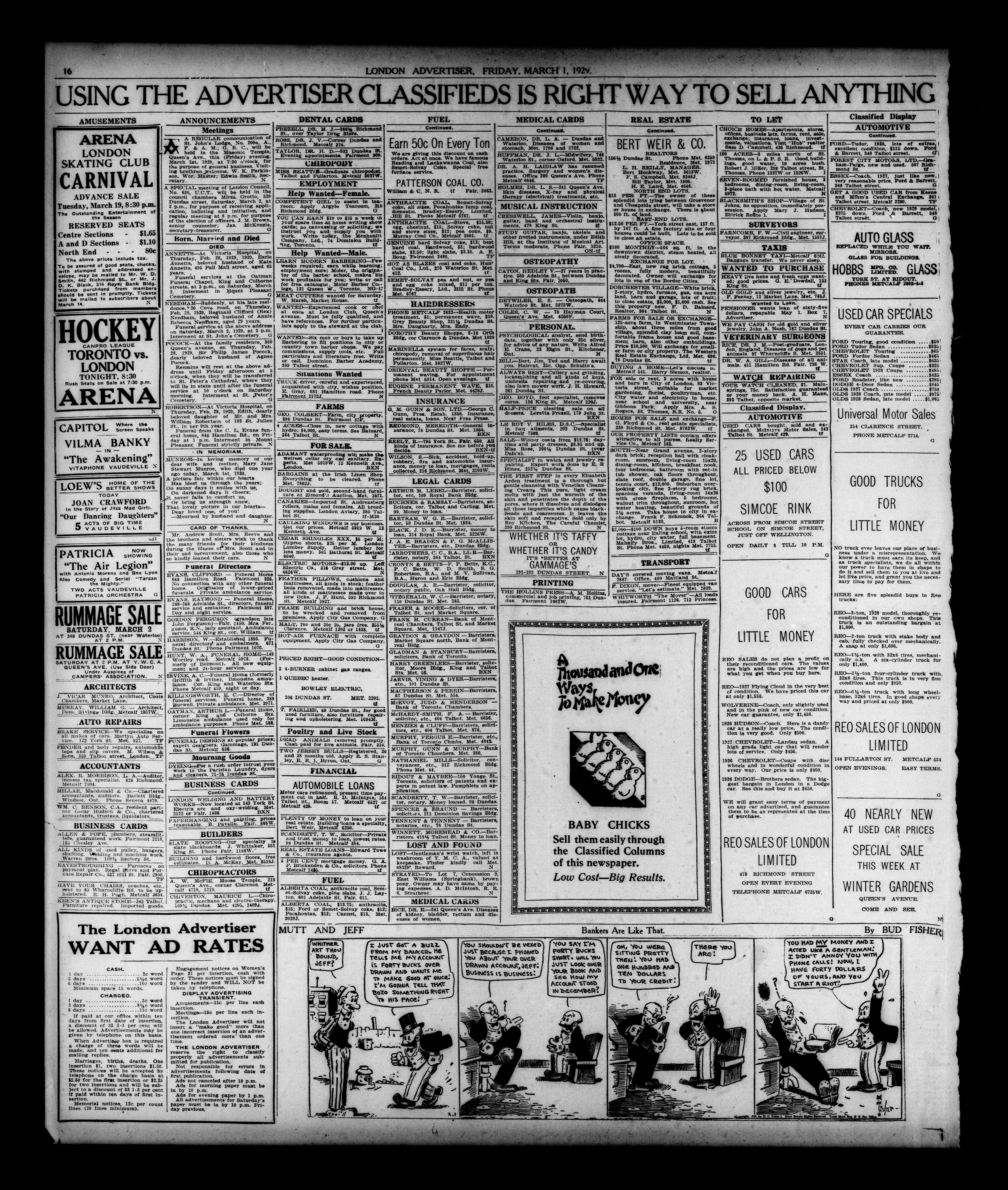 London, Ontario : London Advertiser Company, Limited, [1929]; 18 images, 0 avec recherche en texte intégral