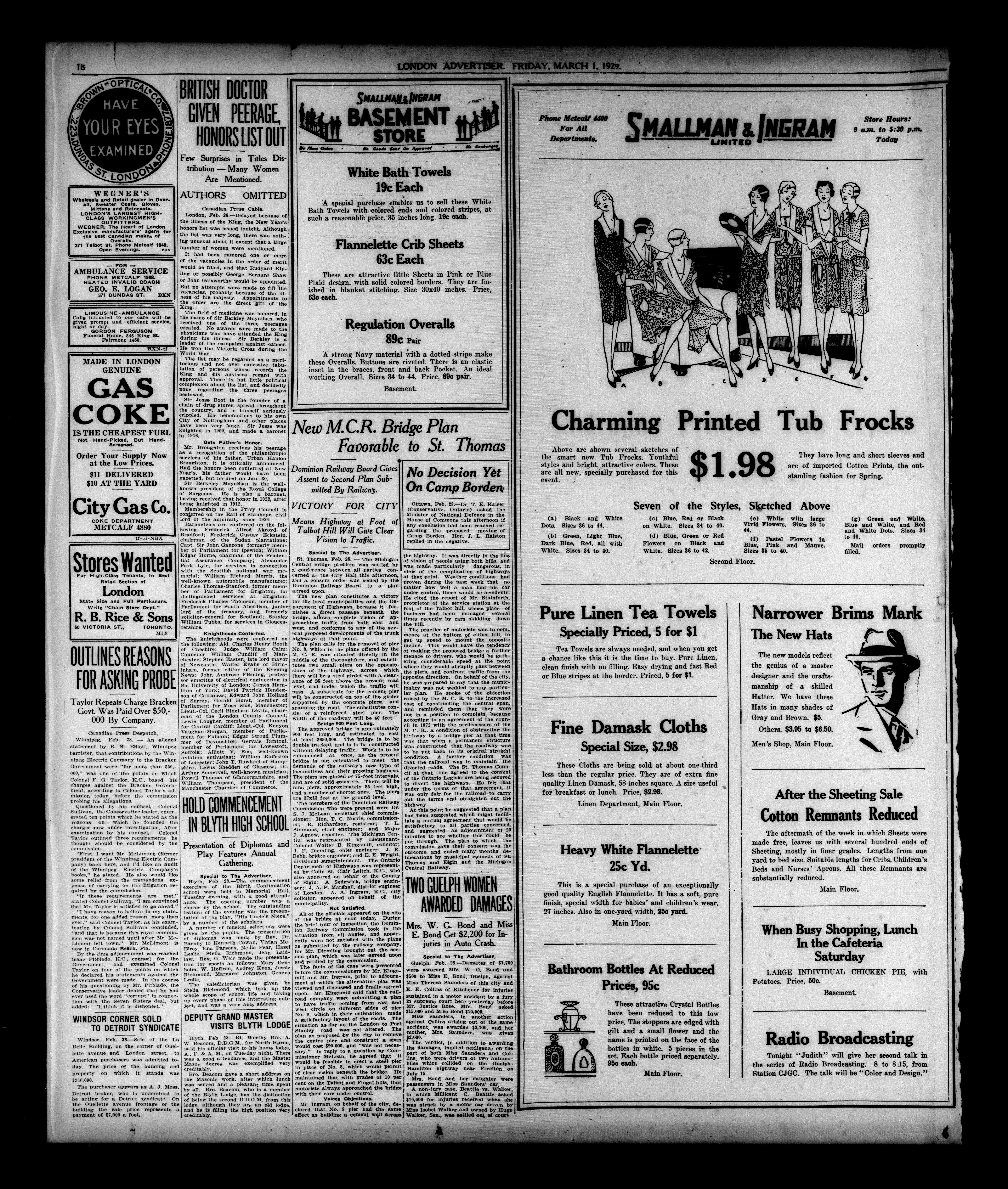 London, Ontario : London Advertiser Company, Limited, [1929]; 18 images, 0 avec recherche en texte intégral