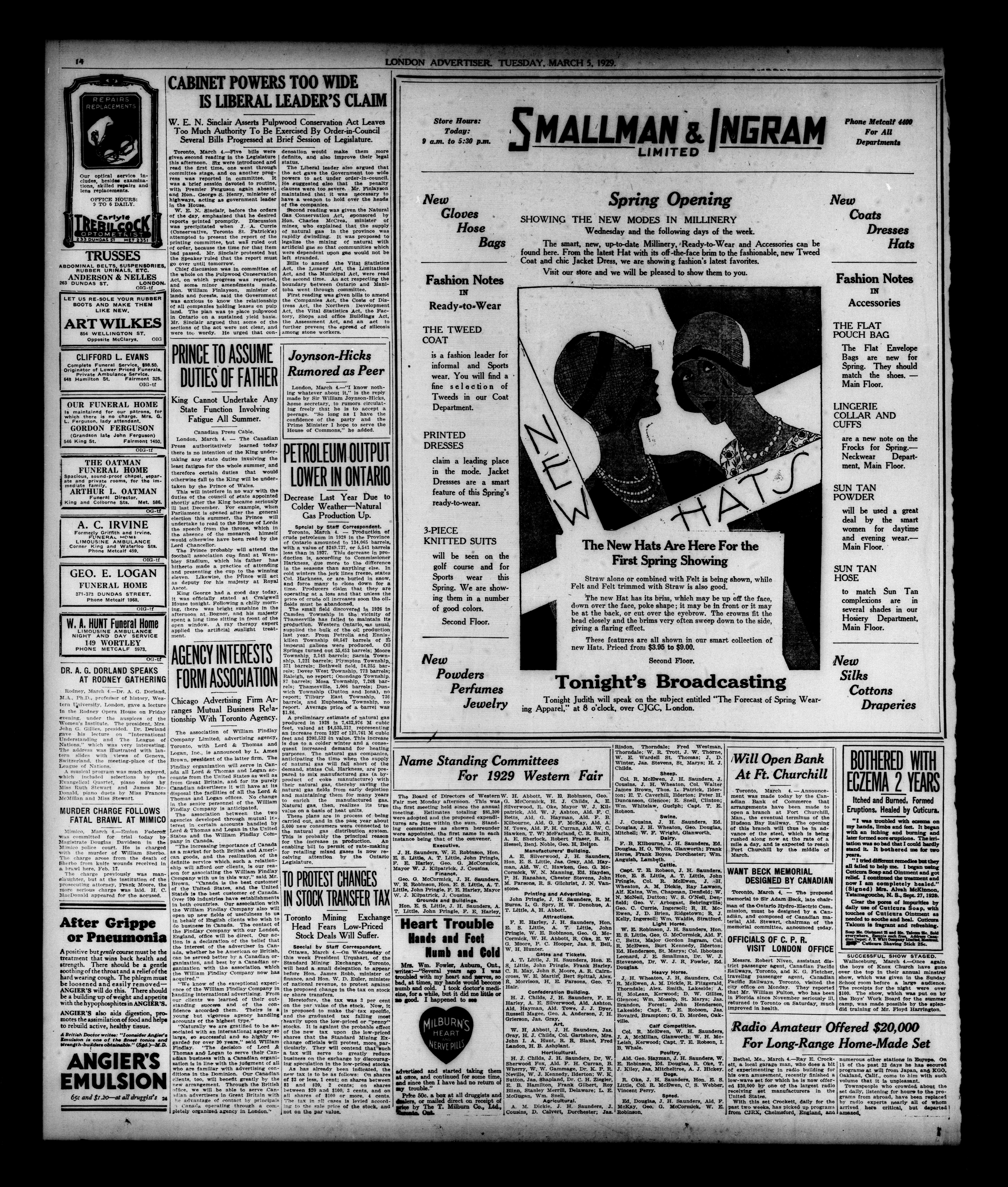 London, Ontario : London Advertiser Company, Limited, [1929]; 14 images, 0 avec recherche en texte intégral