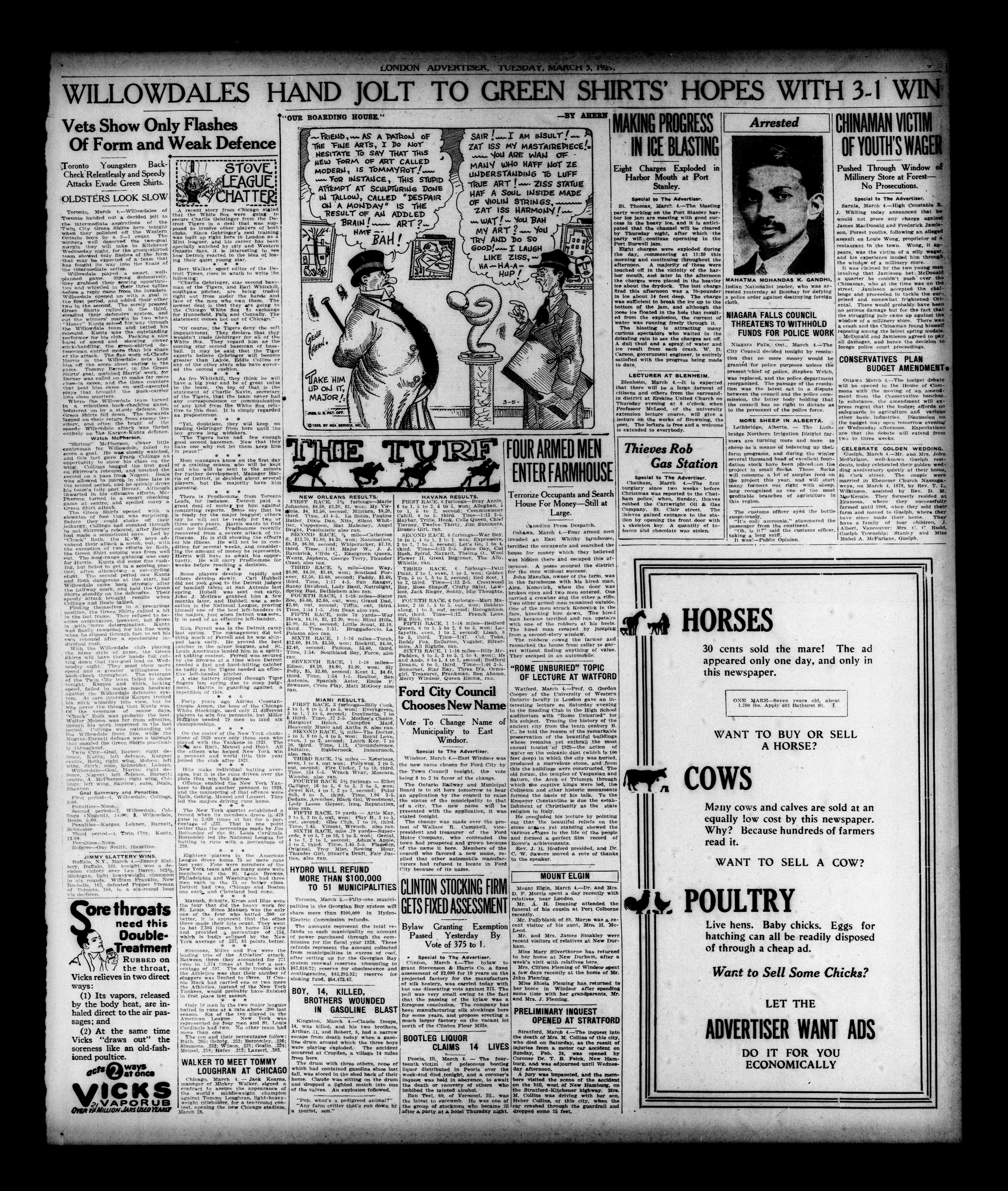London, Ontario : London Advertiser Company, Limited, [1929]; 14 images, 0 avec recherche en texte intégral