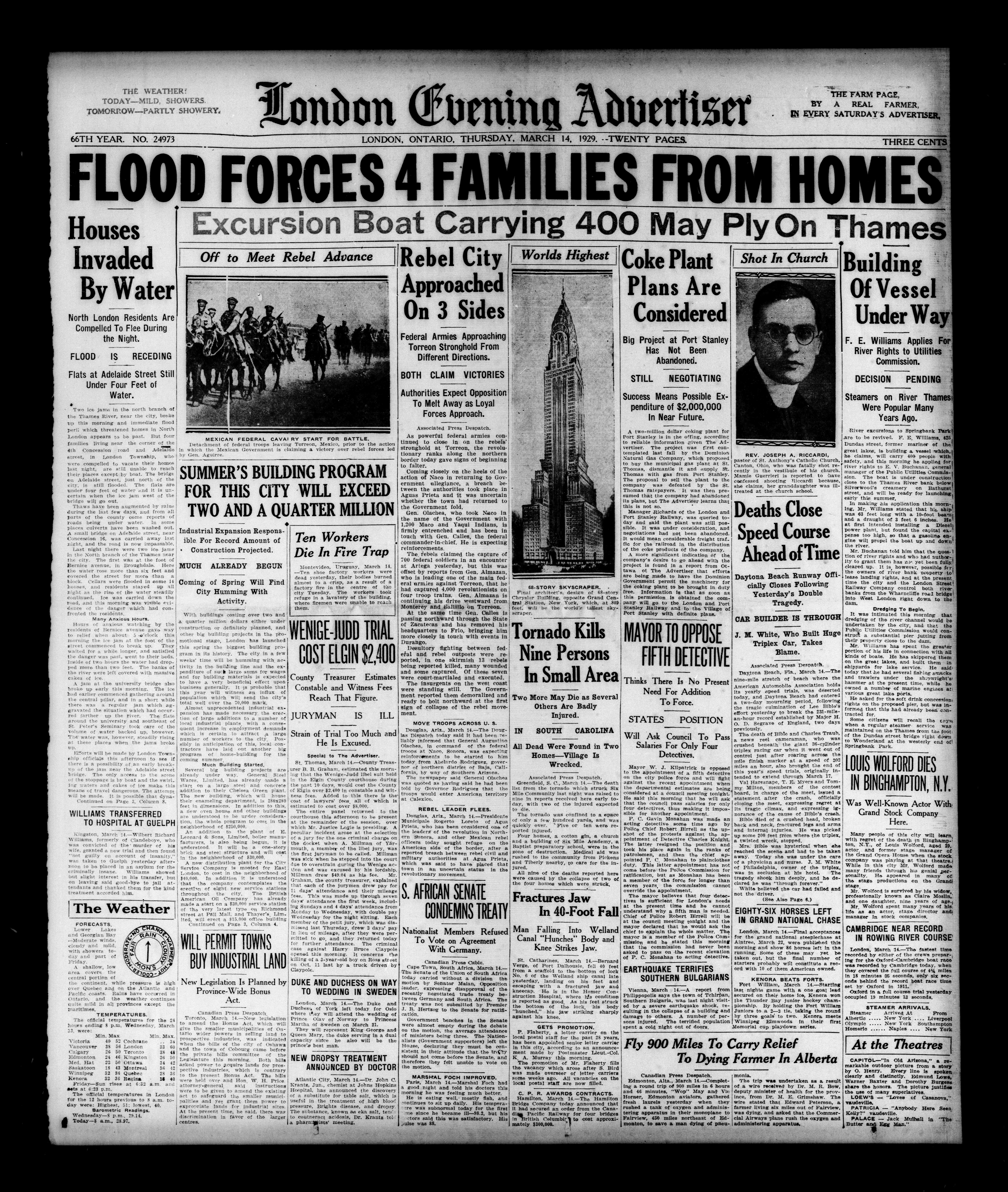 London, Ontario : London Advertiser Company, Limited, [1929]; 20 images, 0 avec recherche en texte intégral