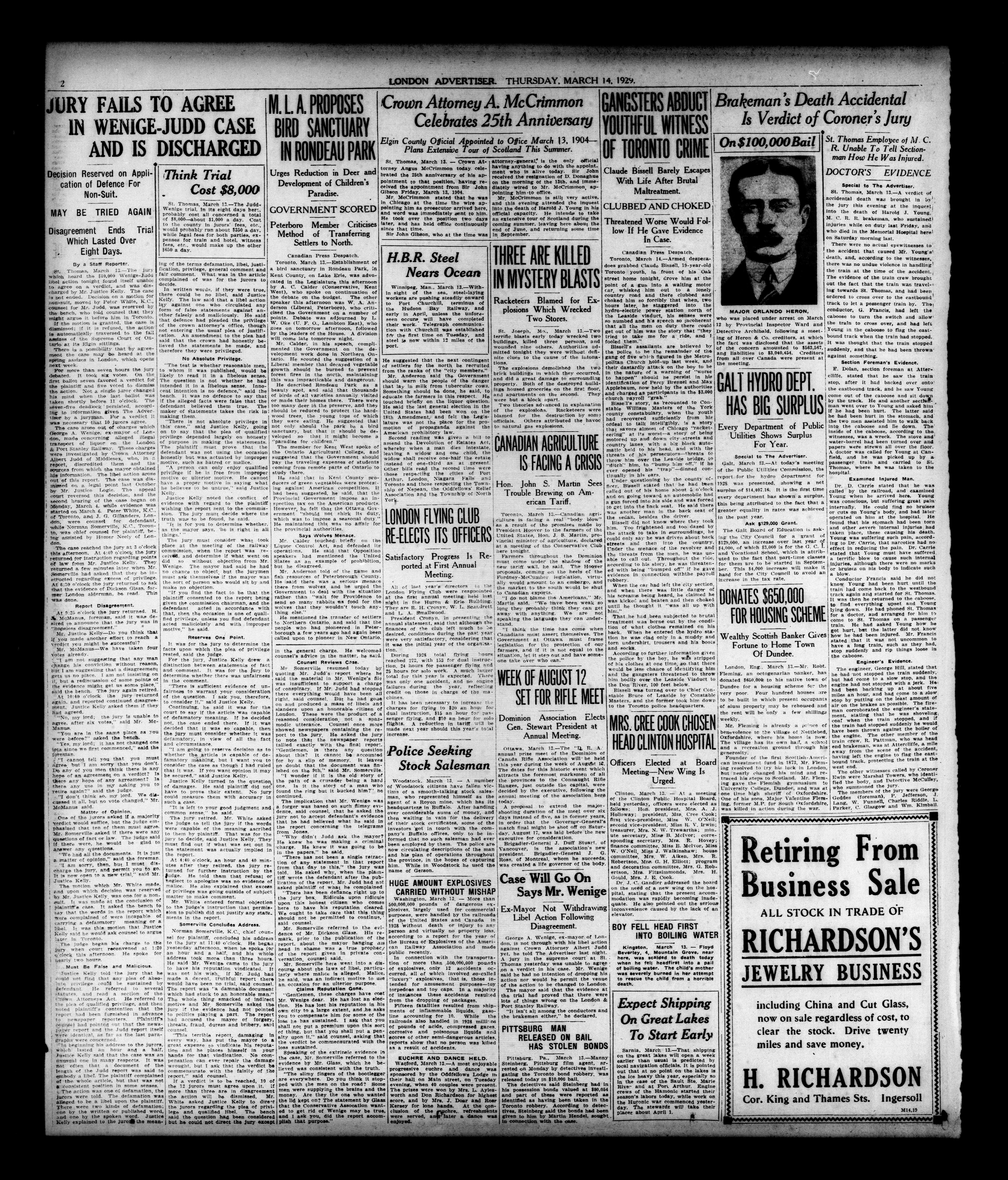 London, Ontario : London Advertiser Company, Limited, [1929]; 20 images, 0 avec recherche en texte intégral