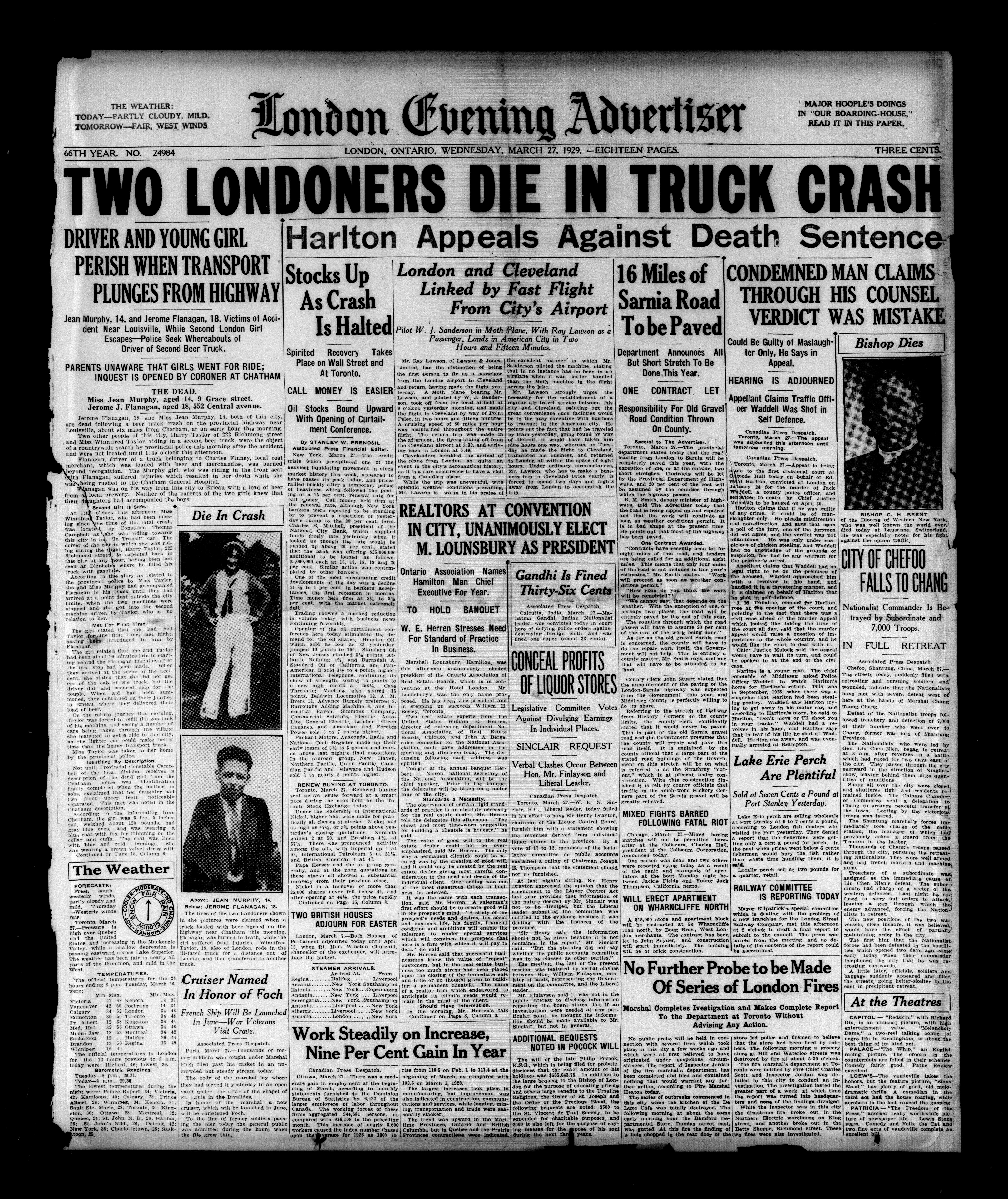 London, Ontario : London Advertiser Company, Limited, [1929]; 18 images, 0 avec recherche en texte intégral