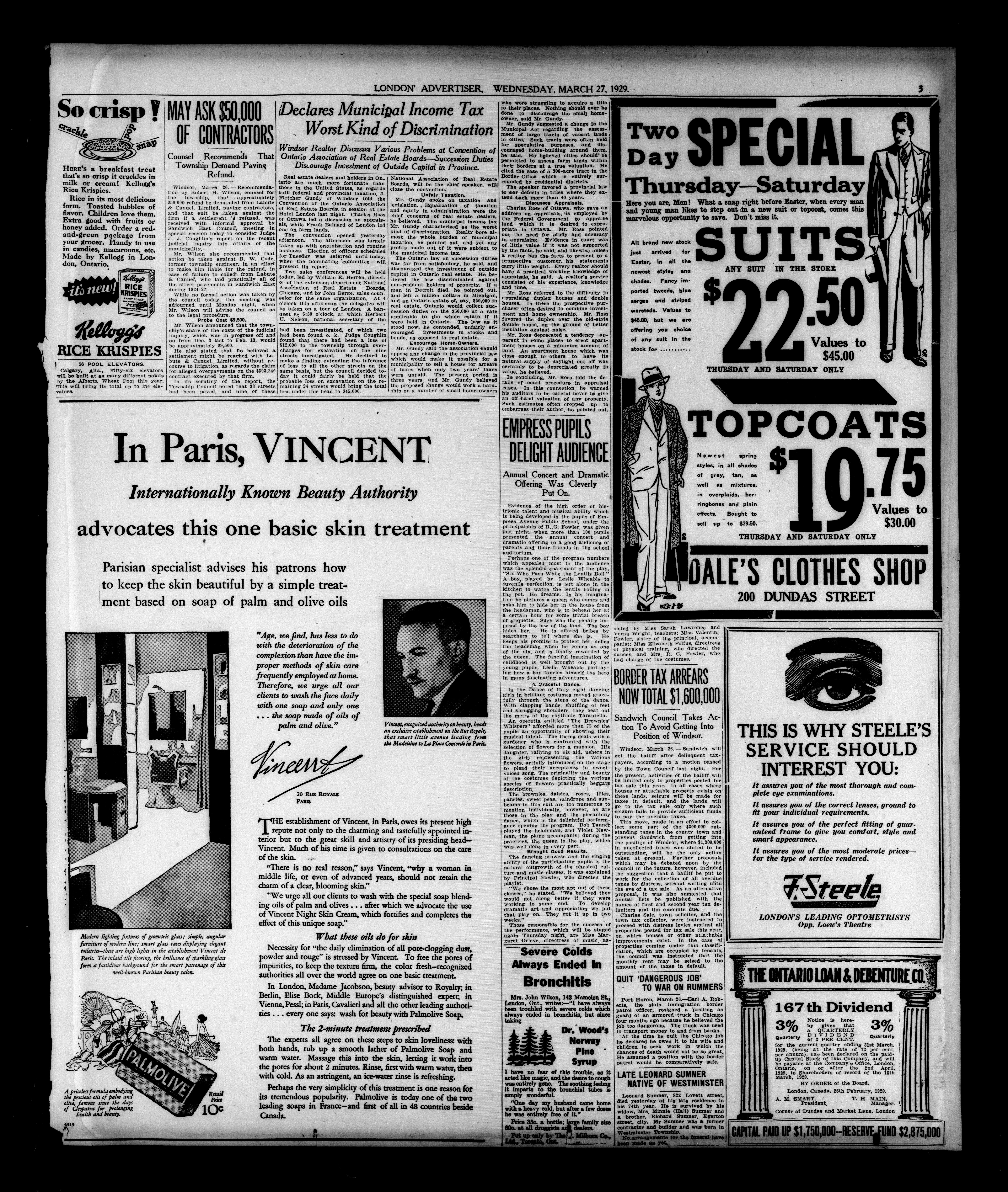 London, Ontario : London Advertiser Company, Limited, [1929]; 18 images, 0 avec recherche en texte intégral