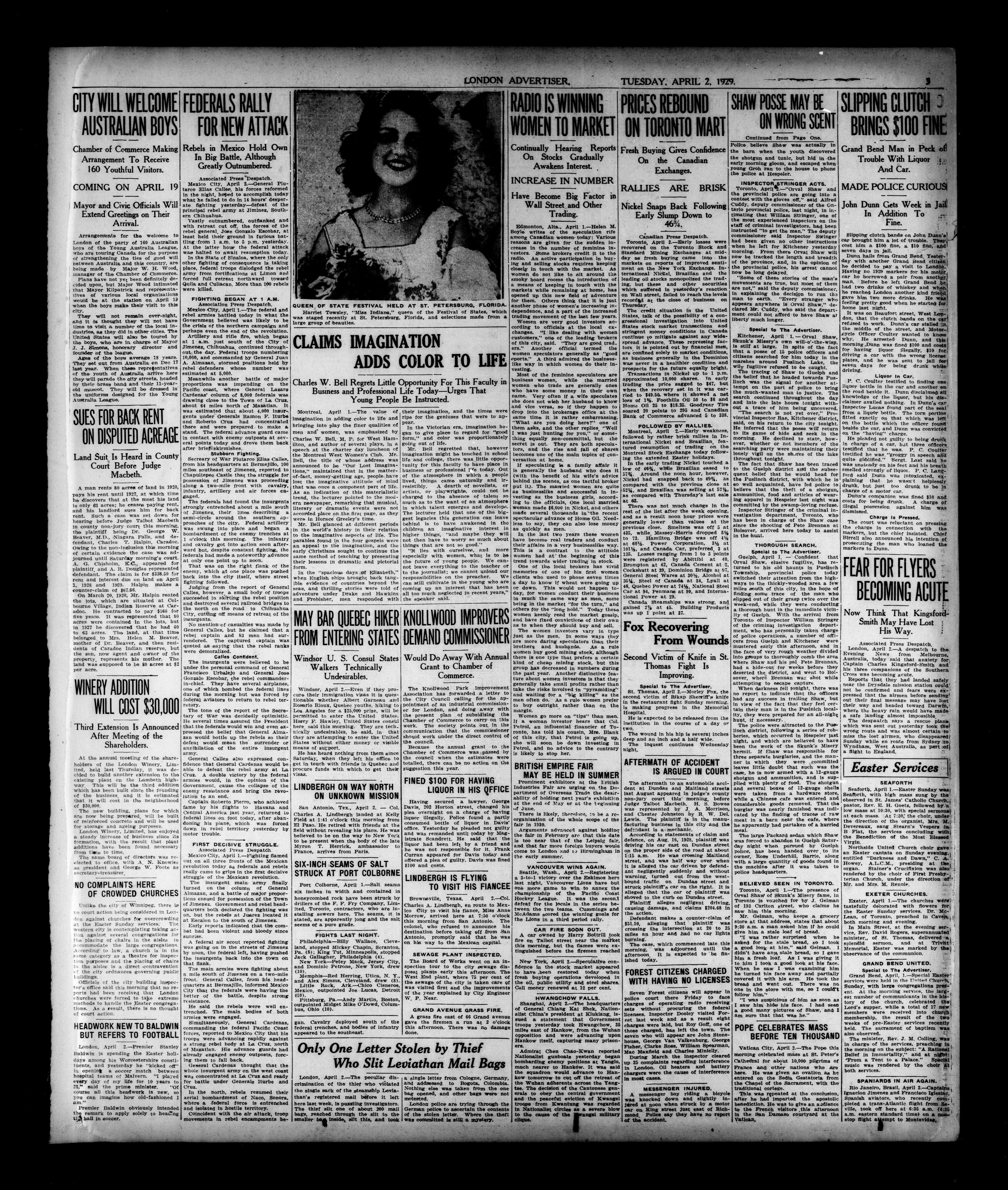 London, Ontario : London Advertiser Company, Limited, [1929]; 16 images, 0 avec recherche en texte intégral