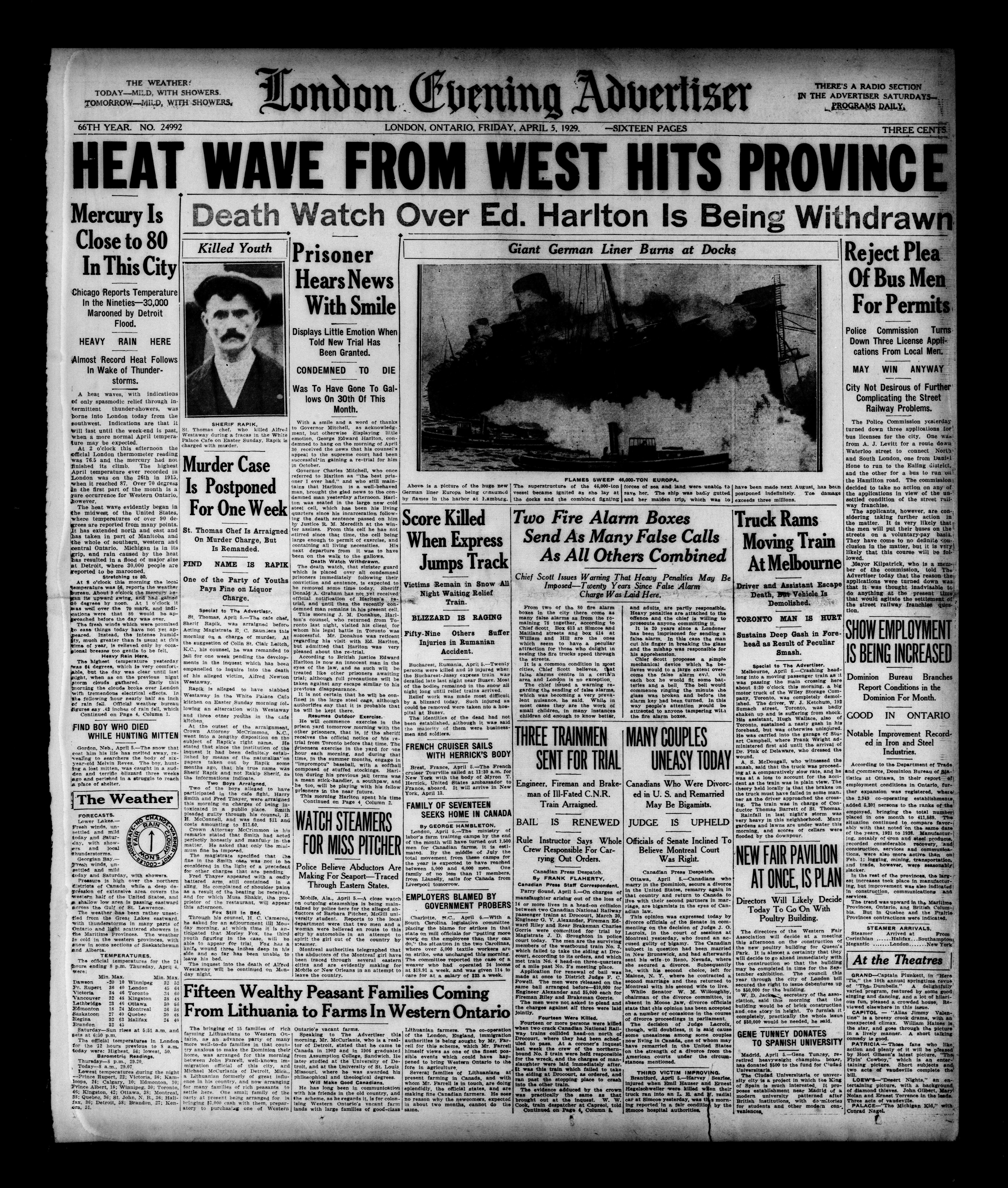 London Evening Advertiser. : London evening advertiser : 66th Year, No. 24992 (April 5, 1929)